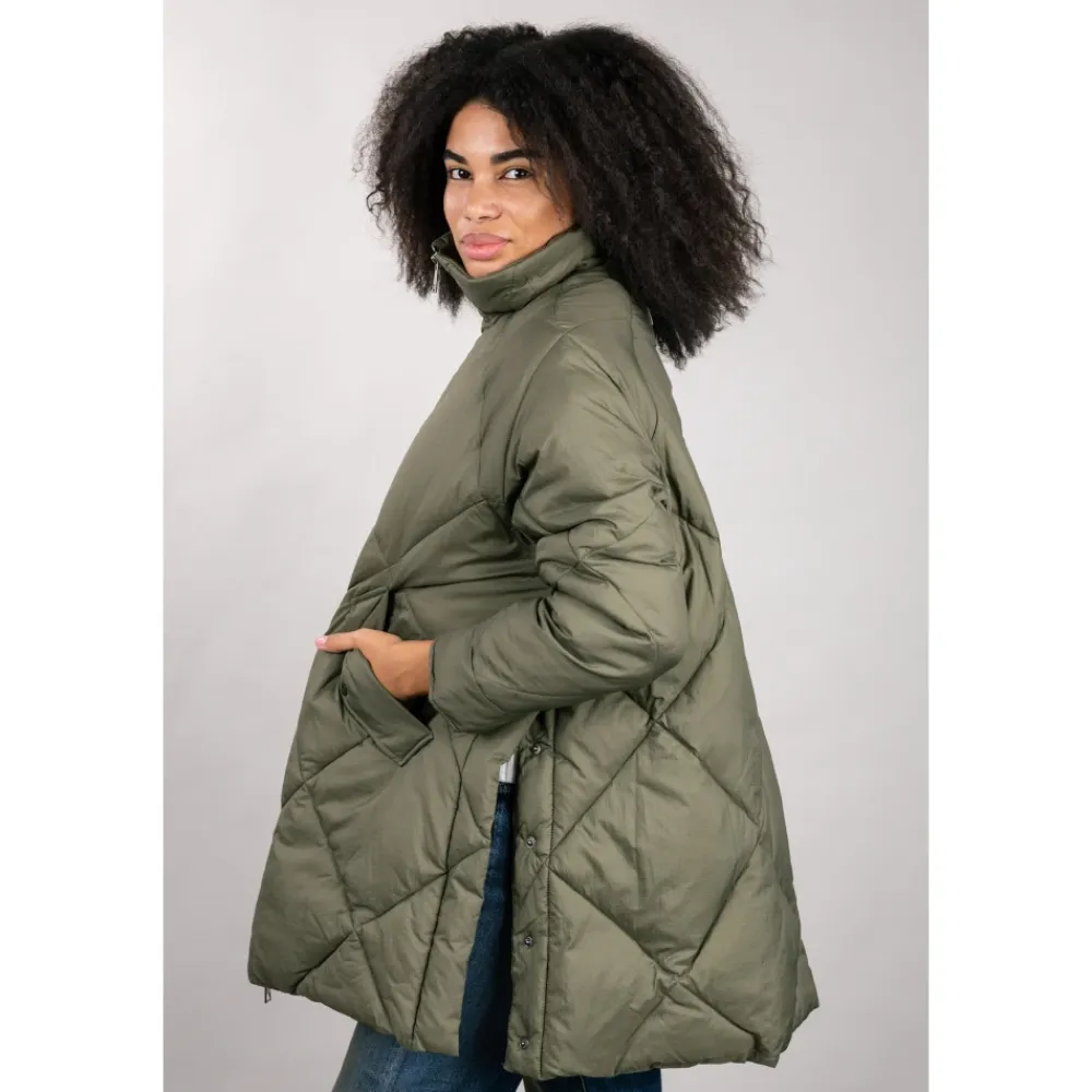 OOF Wear Lang Dunjakke kombinerer en lang, minimalistisk silhuet med teknisk stof for hverdagsbeskyttelse mod vejret. Dens vandafvisende nylon memory yderskal holder designet rent, mens den tilføjer praktisk ydeevne. Nøgleattributter: Grøn | Militærgrøn | Nylon memory | Vandafvisende | Vejrbestandig | Påsyede lommer foran | Central lynlåslukning | Isoleret vattering | Lang silhuet | Minimalistisk design | Rene linjer | Dimensioner og pasform: Bred pasform