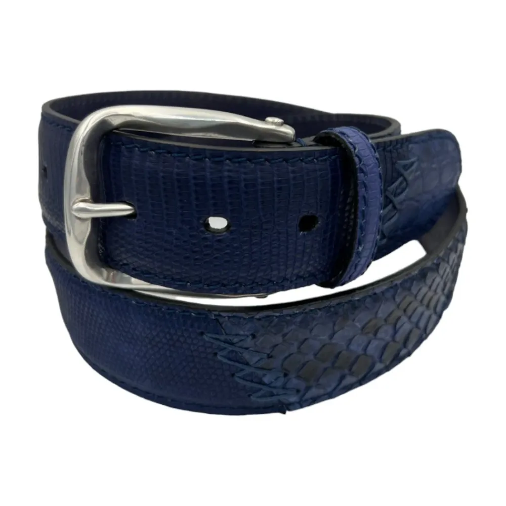 Paolo Vitale Bælter*Håndsyet Reptil Læderbælte Blå
