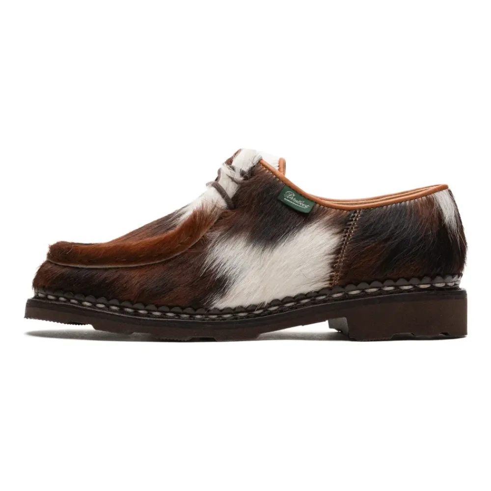 Paraboot Michael Griff fra Paraboot opdaterer den klassiske derby med en overdel i kohud med hår, hvilket giver et karakteristisk tekstureret look. Bygget på en slidstærk gummisål med norsk randsyning, passer den til både et poleret afslappet look og outfits til byen. Nøgleattributter: Brun | Brązowy | Kohud | Slidstærk gummisål | Godt greb og stødabsorbering | Læderforing | Norsk randsyning | Derby silhuet | Ponyhair kohudoverdel med naturlige brune og hvide toner | Detaljer med kantbånd | To-øje snøring | Sammensætning & pleje: Kohud (med hår) | Læderforing | Gummisål | Børst forsigtigt for at fjerne snavs. Undgå længerevarende udsættelse for vand. Brug produkter formuleret til læder med hår og test først på et lille område.