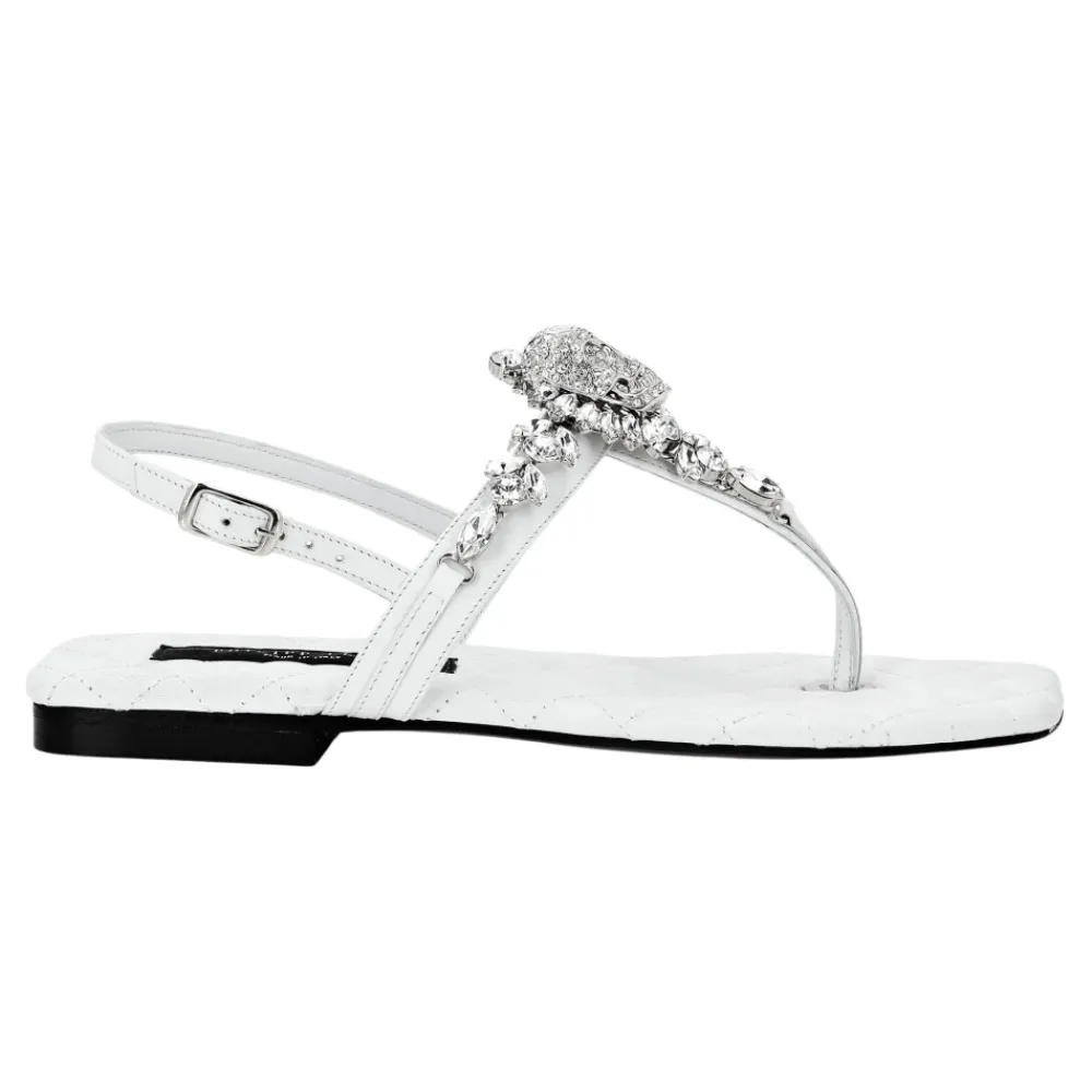 Philipp Plein Sandals Flat Crystal Skull with Crystals er T-rem nappa sandaler defineret af et juvelbesat kranie og rhinestone-udsmykning, ideelle til styling med Capri-bukser eller et sigøjner-skørt. Vigtigste egenskaber: Hvid | Kalveskind | Ankelrem med spænde | Lædersål | T-rem silhuet | Juvelbesat kranie ornament | Rhinestone-accenter | Diamantquiltet fodseng | Dimensioner og pasform: Små i størrelsen – overvej at bestille en størrelse større. | Sammensætning og pleje: Overdel: 100% kalveskind | Foring: 100% gedeskind | Indersål: 100% kalveskind | Ydersål: 100% kalveskind | Indsats: 100% zink (zamak)