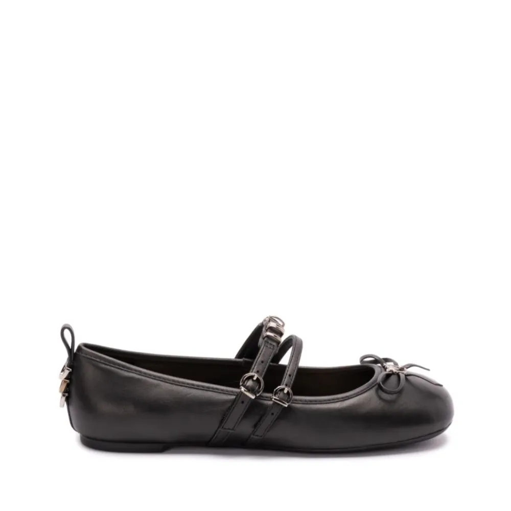 PINKO`s Nappa Læder Ballerina Sko tilbyder et klassisk design med et moderne twist, med blødt nappa læder og en karakteristisk sløjfe detalje. Produkt detaljer: Sort | Gedeskind | Justerbare stropper | Sløjfe detalje | Rund snude | Metal Love Birds Diamond Cut logo | Dimensioner og pasform: Normal pasform | Sammensætning og pleje: 100% Gedeskind | Rengør med en blød klud.
