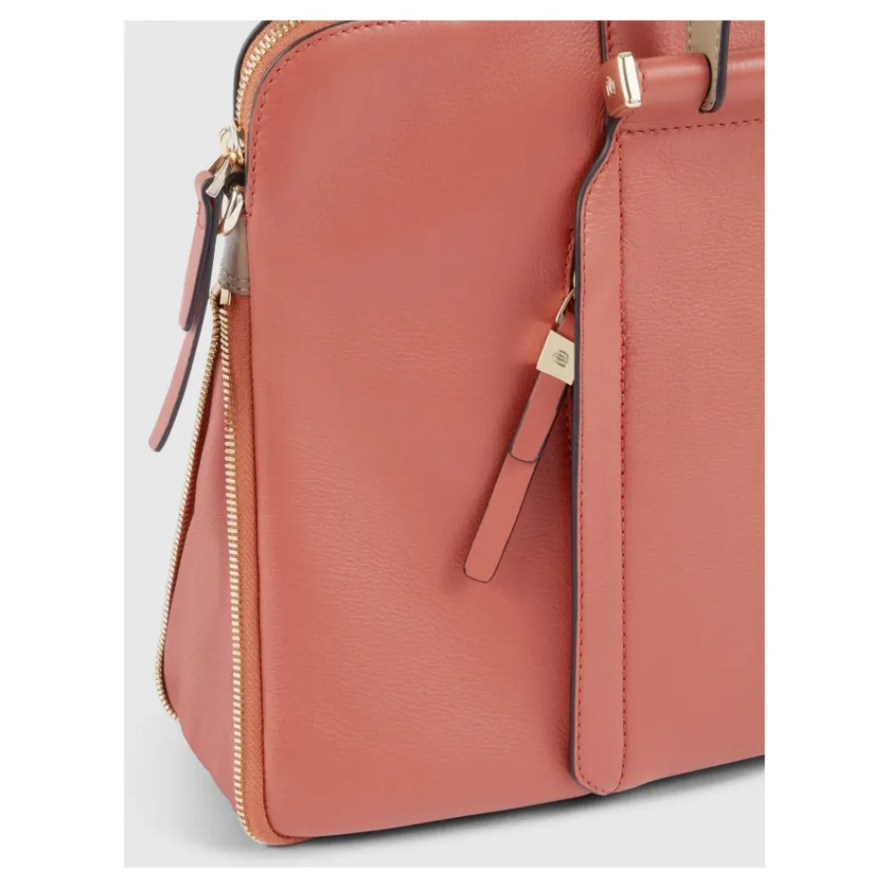 Piquadros udvidbare arbejdstaske til bærbar computer 14″ kombinerer raffineret læderhåndværk med et udvidbart design og dedikeret stødabsorberende beskyttelse til en 14″ bærbar computer – ideel til pendling og daglig brug på arbejdet. Vigtigste egenskaber: Pink | Arancio | Marrone | Læder | RFID-beskyttelse | Stødabsorberende rum til bærbar computer | Lomme til powerbank | Udvidbar kapacitet | Aftagelig skulderrem | Syet håndtag | Dedikeret 14″ rum til bærbar computer | Fast iPad-holder | Lomme til powerbank | Udvidelsessystem | Kalveskindsfinish | Skinnende lyse gyldne metaldele | Kontrasterende håndfarvede kanter | Mål og pasform: 37,0 x 27,0 x 4,0 (cm) | Sammensætning og pleje: Læder | 100% polyester (foring) | Rengør læder med en blød klud og et neutralt voksbaseret produkt. Må ikke nedsænkes i vand; hvis den er våd, duppes den forsigtigt tør. Rengør stoffet med en fugtig svamp og mild sæbe. Må ikke udsættes for direkte varme, må ikke stryges, må ikke renses.