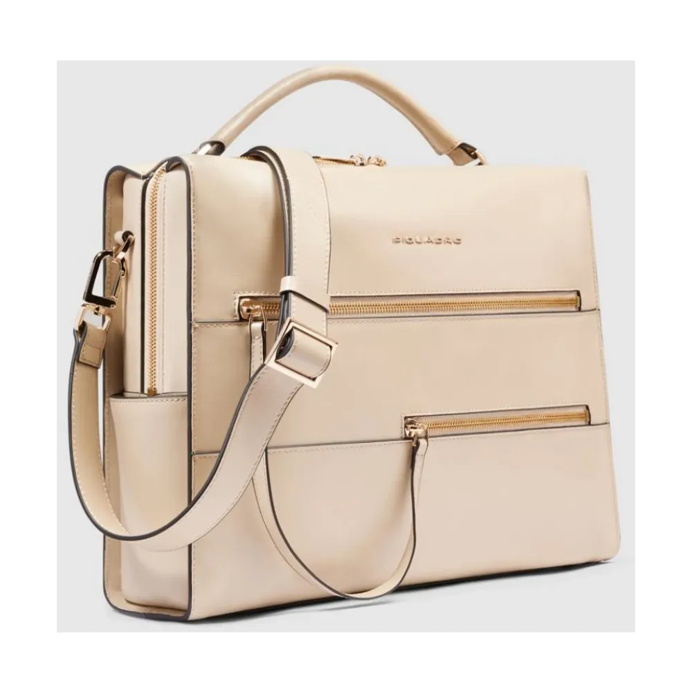 Piquadro Laptop Tasker*Women's laptop bag with iPad® compartment, shock absorbing and RFID protection Beige