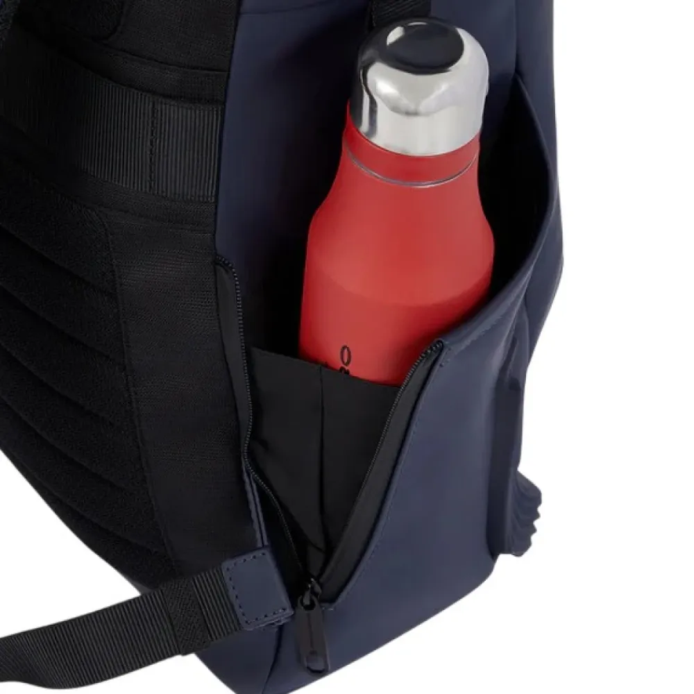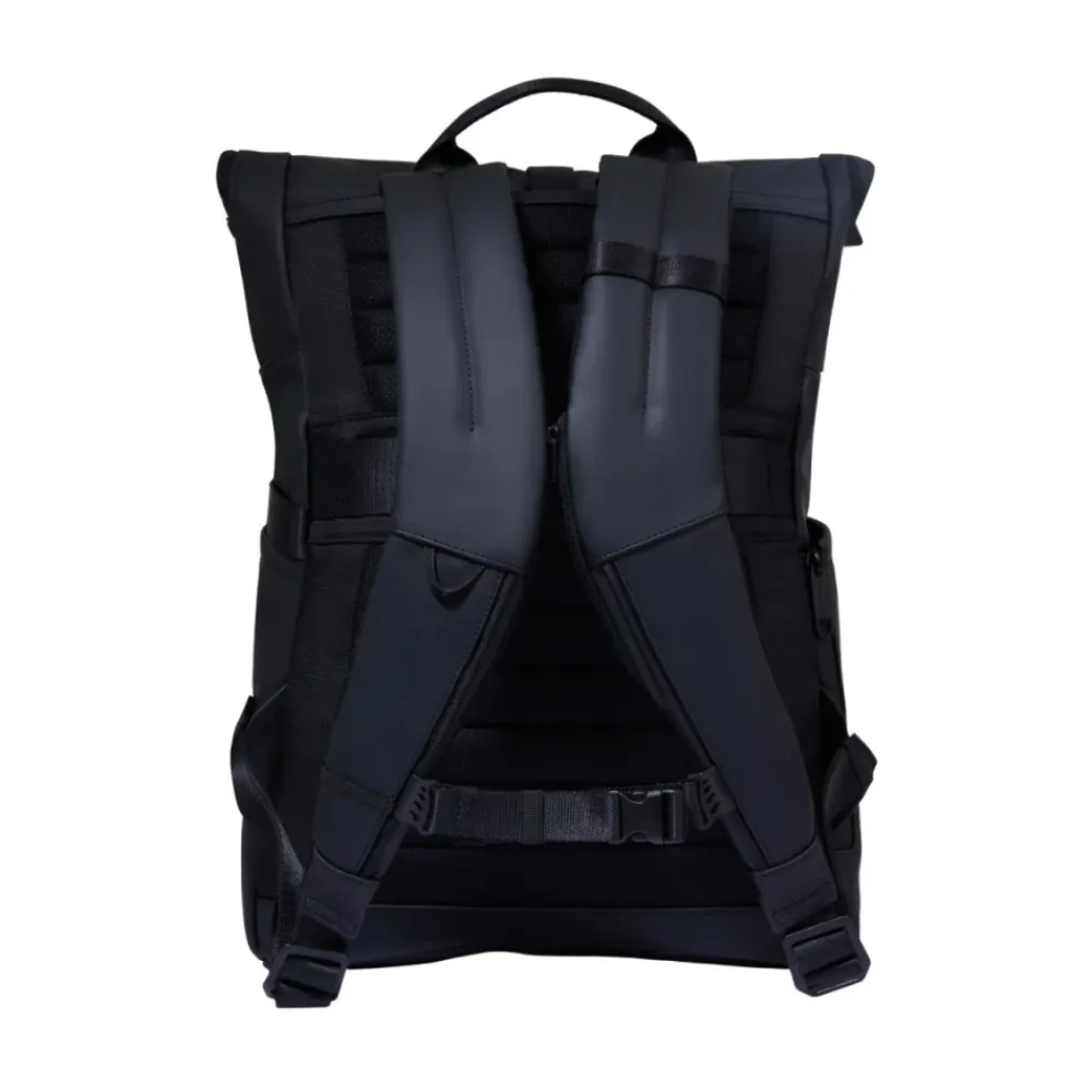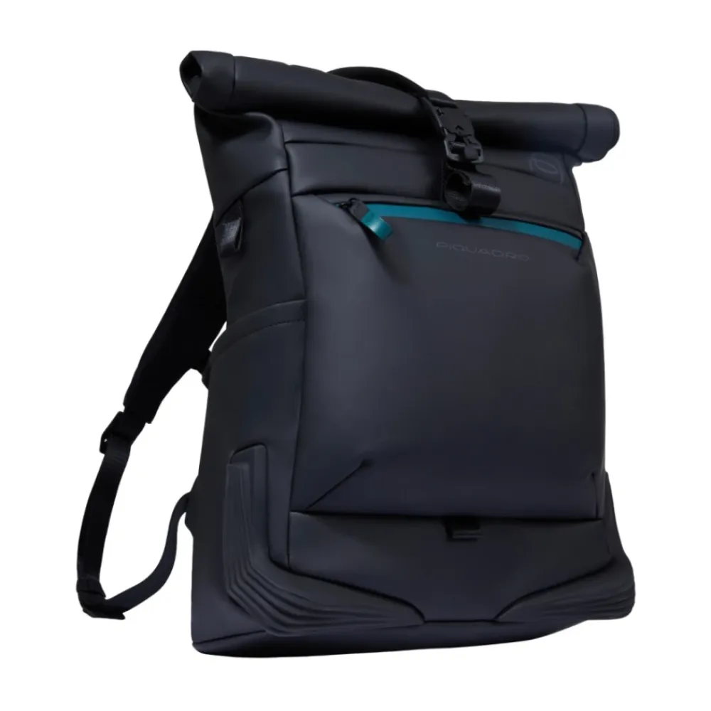Piquadro Roll-top Rygsæk 26 L kombinerer vandafvisende konstruktion med organiseret opbevaring designet til pendling og rejser. Ideel til at beskytte en 15,6″ bærbar computer og tablets, samtidig med at det essentielle er tilgængeligt. Nøgleattributter: Sort | Polyurethan | Vandafvisende | RFID anti-fraud beskyttelse | Stødabsorberende beskyttelse | Justerbar brystrem | Anti-tyveri cykellåsfastgørelse | Badgeholder | Lommelygtefastgørelse | Dedikerede lommer til bærbar computer og tablet | Polstret stødabsorberende rum til bærbar computer | Solbrillelomme | Roll-top lukning | 26 L kapacitet | Strømlinet silhuet | Flere udvendige lommer | Dimensioner og pasform: 47x37x17 | Sammensætning og pleje: 55% PU | 45% Polyester