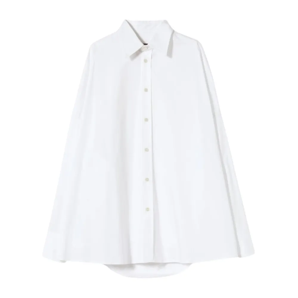 Plan C Draperet Skjorte kombinerer en draperet ryg med en ren knaplukning foran for en afslappet, elegant hverdagsskjorte. Nøgleattributter: Hvid | Bomuld | Knaplukning foran | Draperet ryg | Nedfaldne skuldre | Dimensioner og pasform: Oversized pasform | Sammensætning og pleje: 100% bomuld