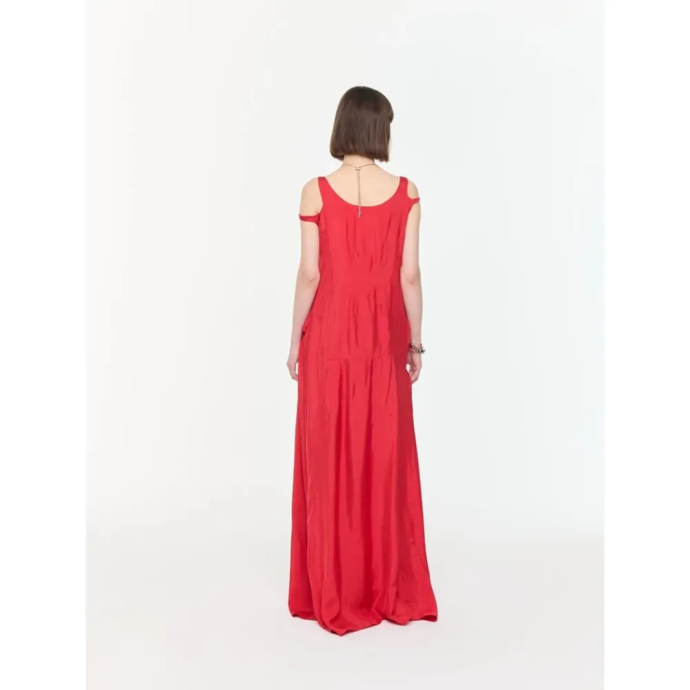 Plan C Lang Kjole fra Plan C er en raffineret selskabskjole designet til formelle begivenheder og særlige lejligheder, med en gulvlang silhuet for et poleret look. Nøgleattributter: Rød