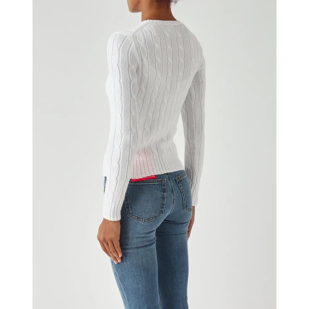 Polo Ralph Lauren Rundhalset Pullover er en klassisk strik designet til alsidig lag-på-lag-brug i hverdagen. Den har en ren, rund halsudskæring og brandets broderede logo, der giver et tidløst og anvendeligt look. Vigtige egenskaber: Hvid | Bianco | Bomuld | Rund halsudskæring | Lange ærmer | Ribstrikkede manchetter og kant | Broderet logo på brystet | Dimensioner og pasform: Slim fit | Materiale og pleje: 100% Bomuld
