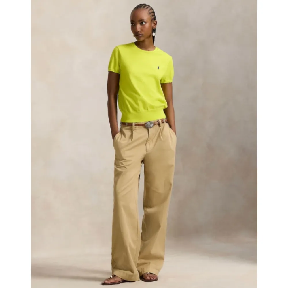 Polo Ralph Lauren kortærmet, finstrikket top i Peridot grøn, fremstillet af en pima bomuldsblanding for et let, raffineret lag. Nøgleattributter: Grøn | Peridot grøn | Pima bomuld | Let | Rund halsudskæring | Korte ærmer | Ribkant ved krave, ærmer og kant | Broderet polo spiller logo på venstre bryst | Dimensioner & pasform: Lige snit | Modelhøjde 1,78 m, bruger størrelse S. | Sammensætning & pleje: 81% bomuld | 16% nylon | 3% elastan
