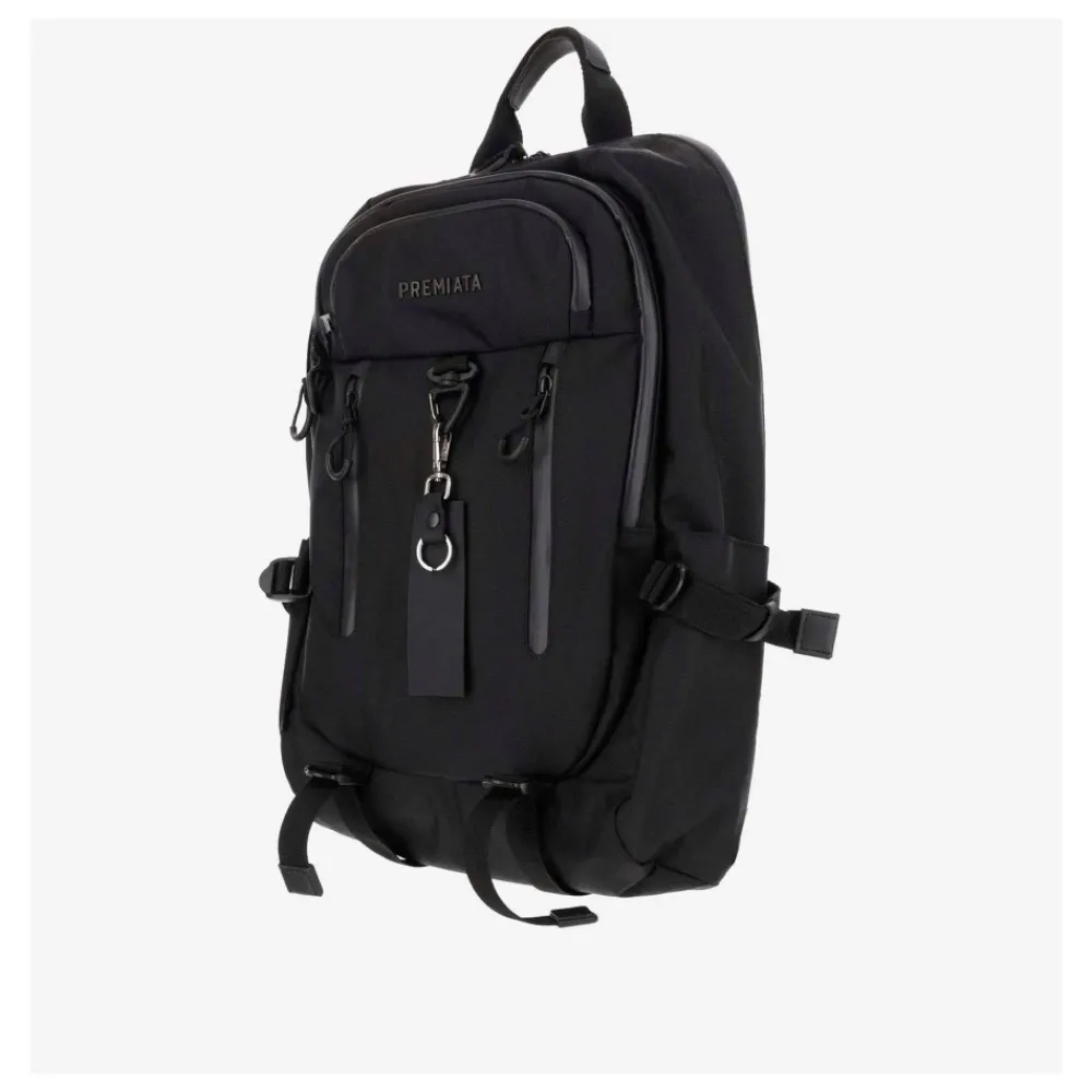 Udvikling af en ikonisk model fra Premiata. Stor kapacitet og teknisk udseende til en rygsæksmodel med en hybrid sjæl. Med en fascinerende, men usædvanlig kombination af form og funktion. Cordura hovedstof. Vandtæt lynlås. Intern lomme til bærbar computer. Indvendig foring af gabardin med logo. Varmeforseglede lynlåse. Øverste brystlomme med varmeforseglet lynlås. Stor forlomme med interne rum til tablet og notesblok. Mat sort krog med personliggjort Premiata nøglering. Læderforet håndtag. Brede EVA-skulderstropper for ekstra komfort. Dobbeltlags polstret ryg med logo. Sidelommer. Justerbare skulderstropper med læderkant. Mål Højde 48 cm Dybde 14 cm Bredde 31 cm