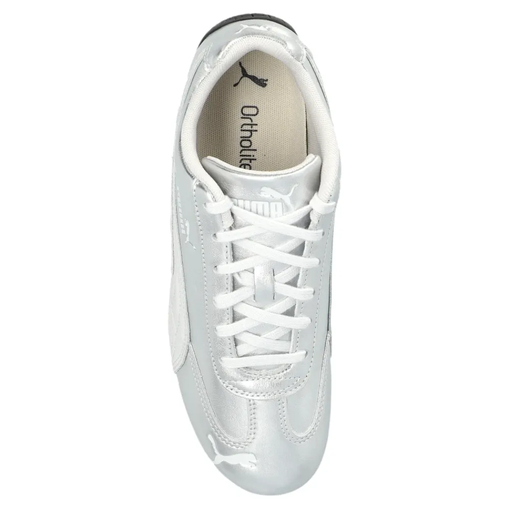 PUMA Speedcat Silver kombinerer en lavprofils, racerinspireret silhuet med en skinnende sølvfarvet læderoverdel til hverdagsbrug og let træning. Vigtige egenskaber: Feather gray | Puma black | Læder | Gummiydersål for pålideligt greb | Polstret OrthoLite-sokforing for komfort | Snørelukning | Tekstilforing | OrthoLite-sokforing | Lavprofils racerinspireret silhuet | Afrundet tå | Skinnende metallisk sølv finish | Præget logo og signatur sidestribe | Dimensioner og pasform: Sålhøjde: 2 cm | Almindelig bredde | Sammensætning og pleje: Læder | Tekstil | Gummi