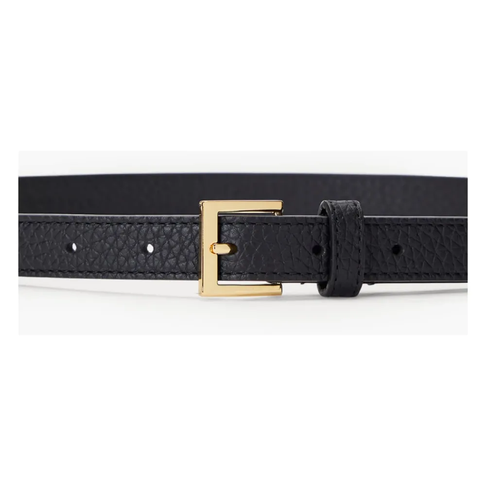 Ralph Lauren Bælte Skinny er et alsidigt tilbehør fremstillet af luksuriøst sort læder, med et karakteristisk gyldent spænde, der tilføjer et strejf af elegance til ethvert outfit. Produkt detaljer: Sort | Læder | Gyldent spænde |