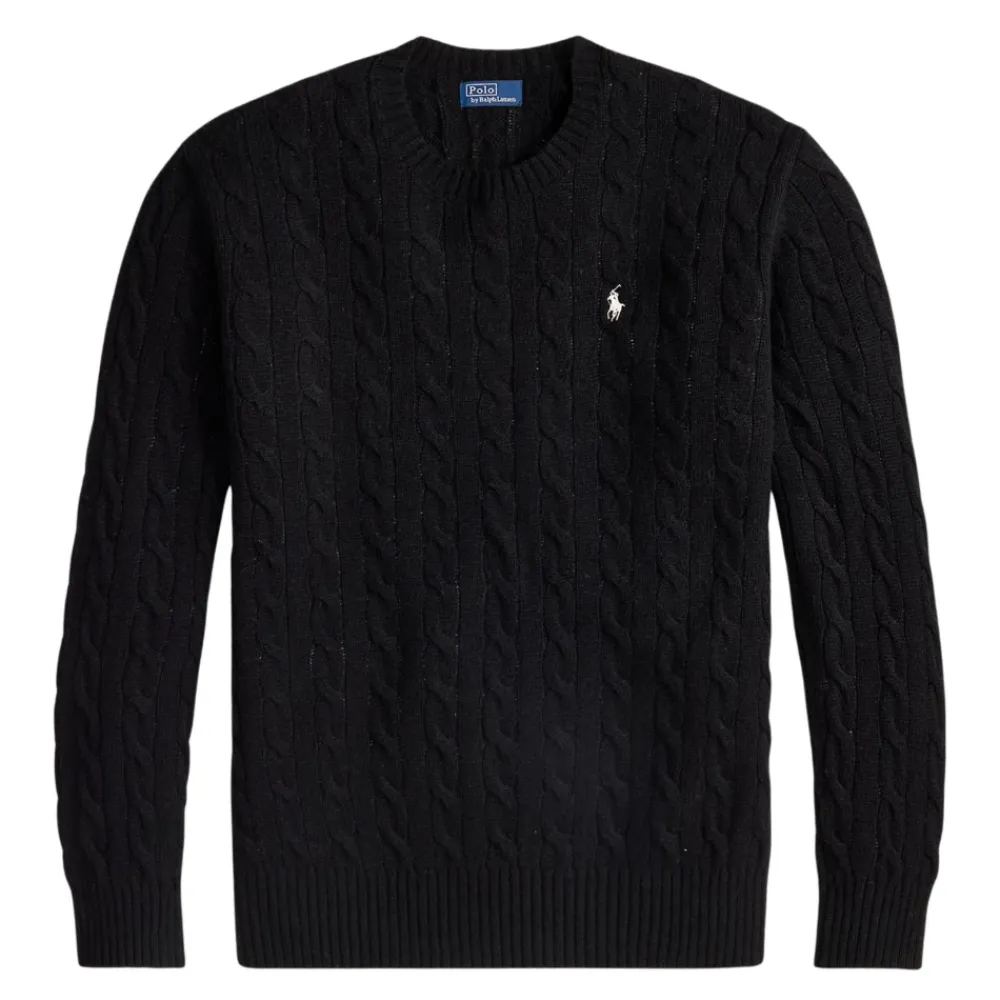 Ralph Lauren Striktrøjer & Sweatere*Crew Neck Sweater med Fletninger og Logo Sort