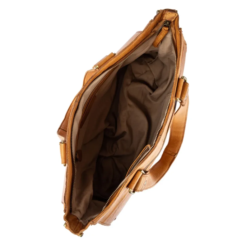 Tidløst designet stor lædertaske med lynlåslukning, skulderhåndtag og justerbar/aftagelig lang rem. Læderet udvikler en smuk patina over tid, hvilket viser en unik karakter. Plads til en 15″ bærbar computer. Håndlavet. Lynlåslomme foran. Hovedrum med lynlåslukning. Aftagelig/justerbar crossbody-strop. Indvendig lynlåslomme. To indre åbne lommer. Fremstillet i Urban Leather, et naturligt malet okseblodslæder defineret af dets unikke egenskaber, hvor det originale kornmønster er blevet forstærket af vintage-lyset for at forstærke læderet, hvilket efterlader det glat og blødt. Mål: H: 32 x B: 40 x D: 13,5 cm. Stil nr. 4961. Farve: Valnød. Kvalitet: 100% Læder.