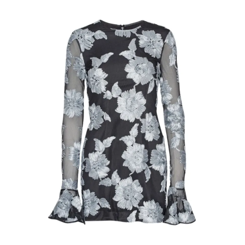 ROTATE Birger Christensen Kjoler*Blomstret Mesh Langærmet Mini Kjole Multifarvet