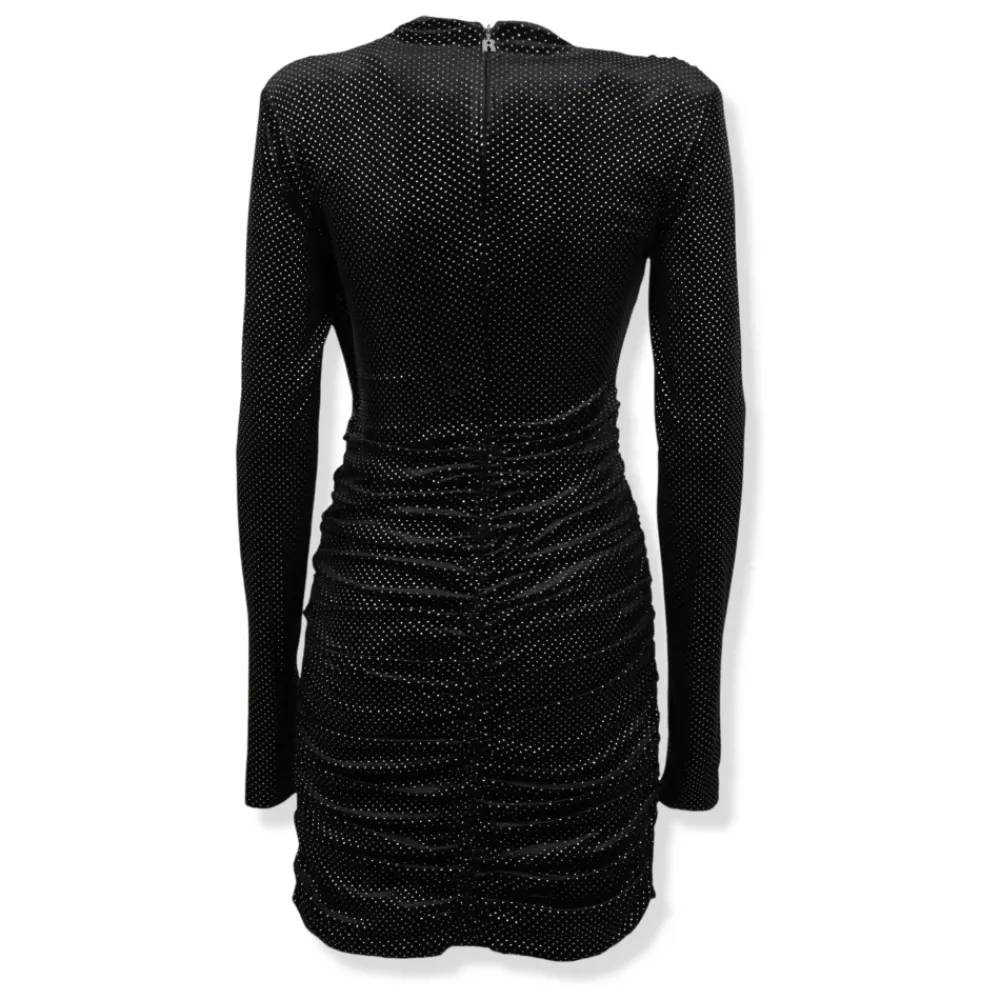 ROTATE Birger Christensen Velvet Ls Mini Dress er en tætsiddende mini-velourkjole designet til aften- og festbrug, med asymmetrisk drapering foran og en overflade med polkaprikker. Vigtigste egenskaber: Sort | Velour | Tætsiddende silhuet | Lange ærmer | Asymmetrisk drapering foran | Polkaprikket tekstureret overflade | Mini-længde | Dimensioner og pasform: Tætsiddende | Sammensætning og pleje: Velour