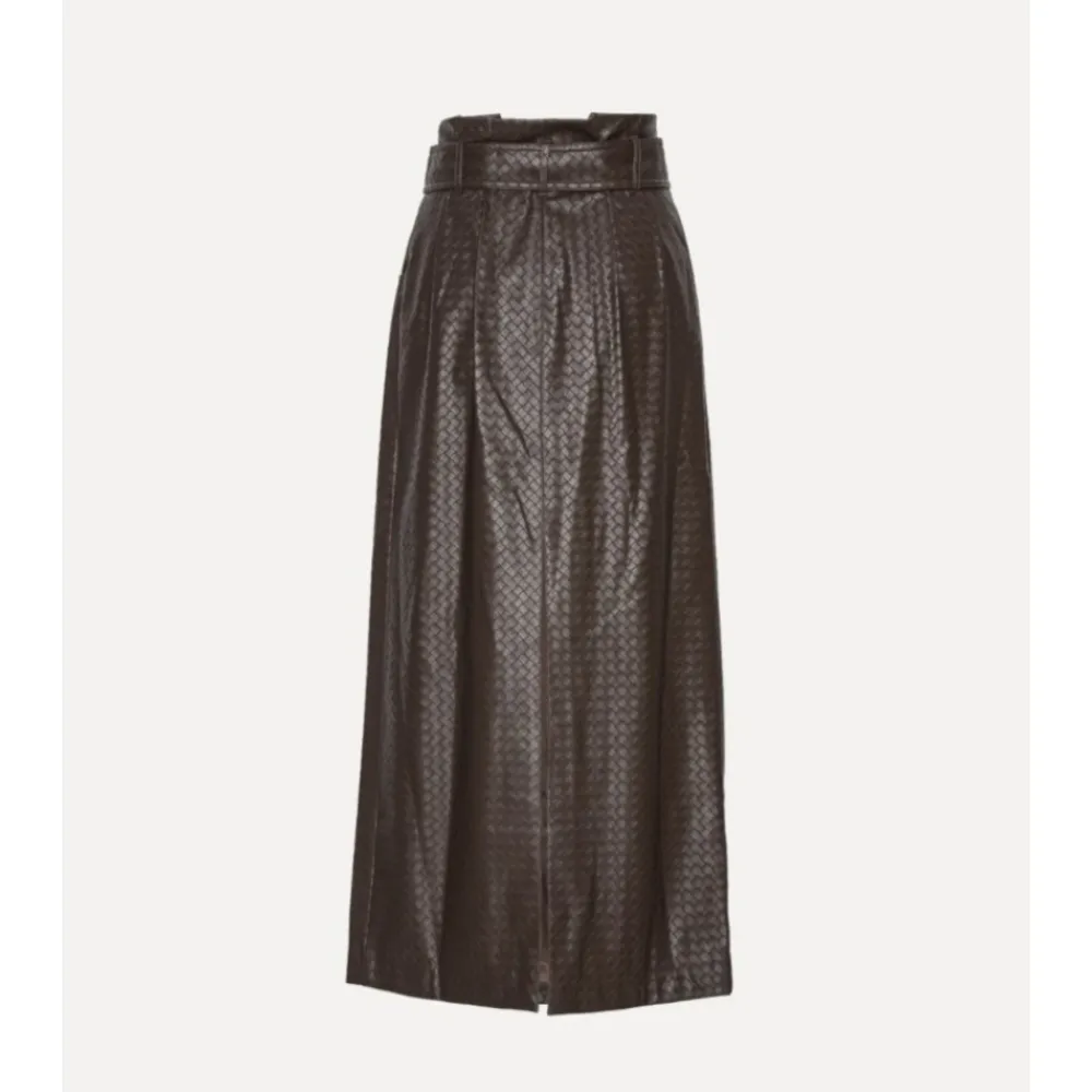 ROTATE Birger Christensen’s Midi Paper Waist Skirt er en midi-nederdel med faux-læder-effekt, en struktureret paperbag-talje og et tonalt bælte. Den er designet som en elegant nederdel til både dag og aften med praktiske detaljer som lommer og en lynlåslukning. Vigtige egenskaber: Brun | Marrón | Polyester | Bælte med bæltestropper | Forlommer | Lynlåslukning | Foret | Paperbag-talje med læg | Tonalt bælte med spænde | Midi-længde | Slids bagpå | Dimensioner & pasform: Regular fit | Midt på læggen | Sammensætning & pleje: 100% Polyester