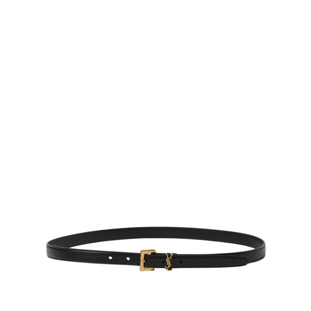 Saint Laurent Bælter*Stilfuldt læderbælte med metal spænde Sort