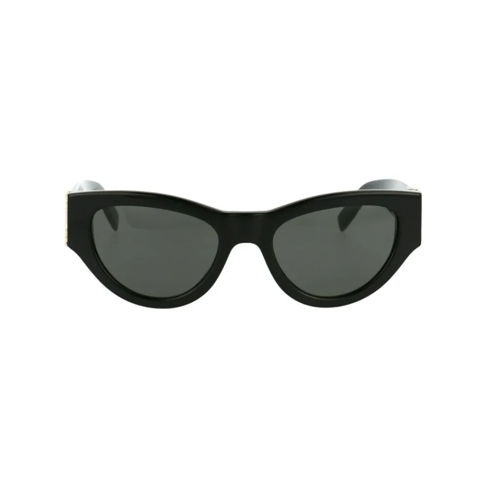 Forhøj din stil med disse Saint Laurent SL M94 solbriller til kvinder. Den blanke sorte acetatramme og den solide grå nylonlinse udstråler sofistikeret, mens det gyldne YSL-monogram på tempelene tilføjer et strejf af luksus. Mål: Linsebredde – 53 mm, Bro – 20 mm, Tempel – 145 mm.