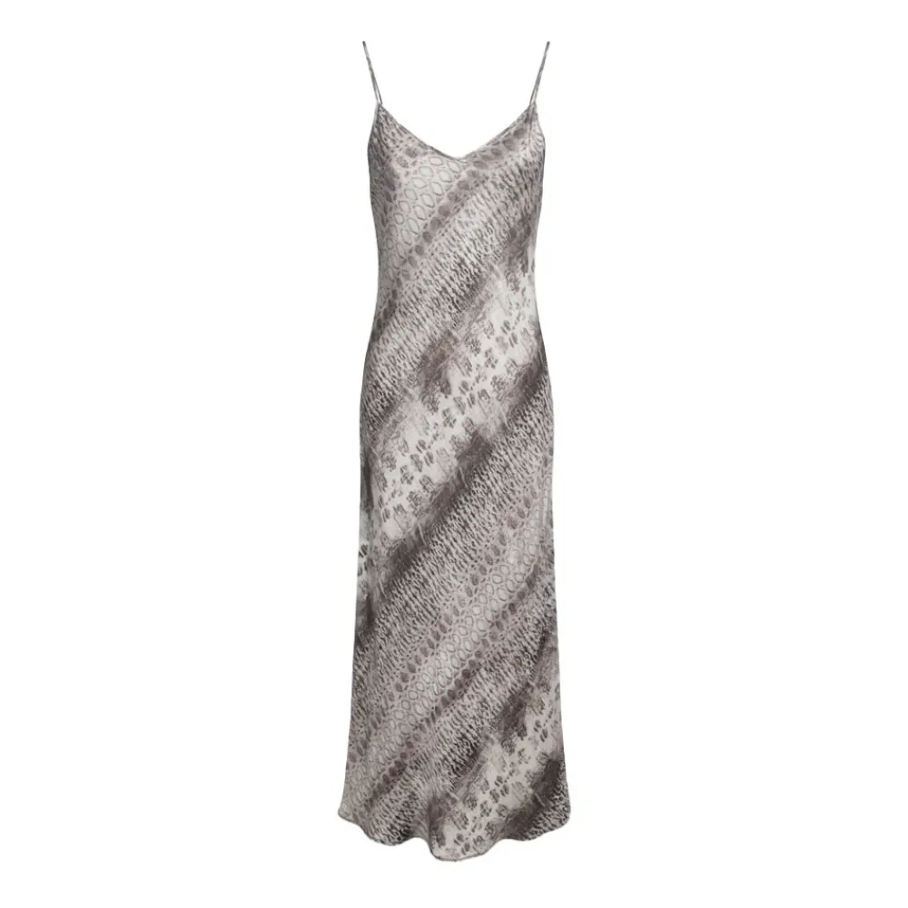3624 Strap Maxi Dress er en mønstret maxikjole i silke med to tynde stropper og en indvendig foring, ideel til brug fra dag til aften. Nøgleattributter: Multicolor | Mønstret | Sand | Silke | Foret indvendigt | Mønstret print | To tynde stropper | Maxi længde | Dimensioner og pasform: Tætsiddende | Sammensætning og pleje: 100% silke | Foring: 72% viskose, 28% silke | Håndvask.