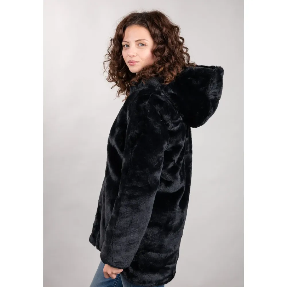 Save The Duck’s Bridget Reversible Jacket er en lang, alsidig jakke med en quiltet side og en blød polyester imiteret pels-side for justerbar varme og stil. Nøgleattributter: Sort | Polyester | Reversibelt design | Hætte | Skjulte, nedre lommer på begge sider | Central plastiklynlås med reversibel skyder og specialdesignet træk | Lang længde | Quiltet side | Blød polyester imiteret pels-side | Tone-i-tone logo | Sammensætning & pleje: Polyester | Syntetisk polyester imiteret pels