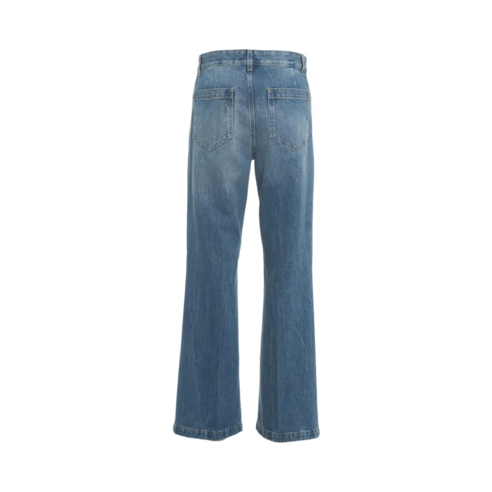Seafarer Curt Jeans kombinerer en højtaljet, bredbenet silhuet med karakteristiske påsatte lommer foran. Fremstillet i Italien af premium denim, leverer de et poleret, alsidigt look til hverdagsbrug. Vigtigste egenskaber: Blå | Blu | Denim | Denim uden stretch | 369 gram denim | Påsatte lommer foran og bagpå | Lynlås- og knaplukning | Bæltestropper | Høj talje | Bredt ben | Flared silhuet | Dimensioner & pasform: Højtaljet | Komfortabel pasform | Sammensætning & pleje: 100% bomuld | Skånsom vask ved 30°C.