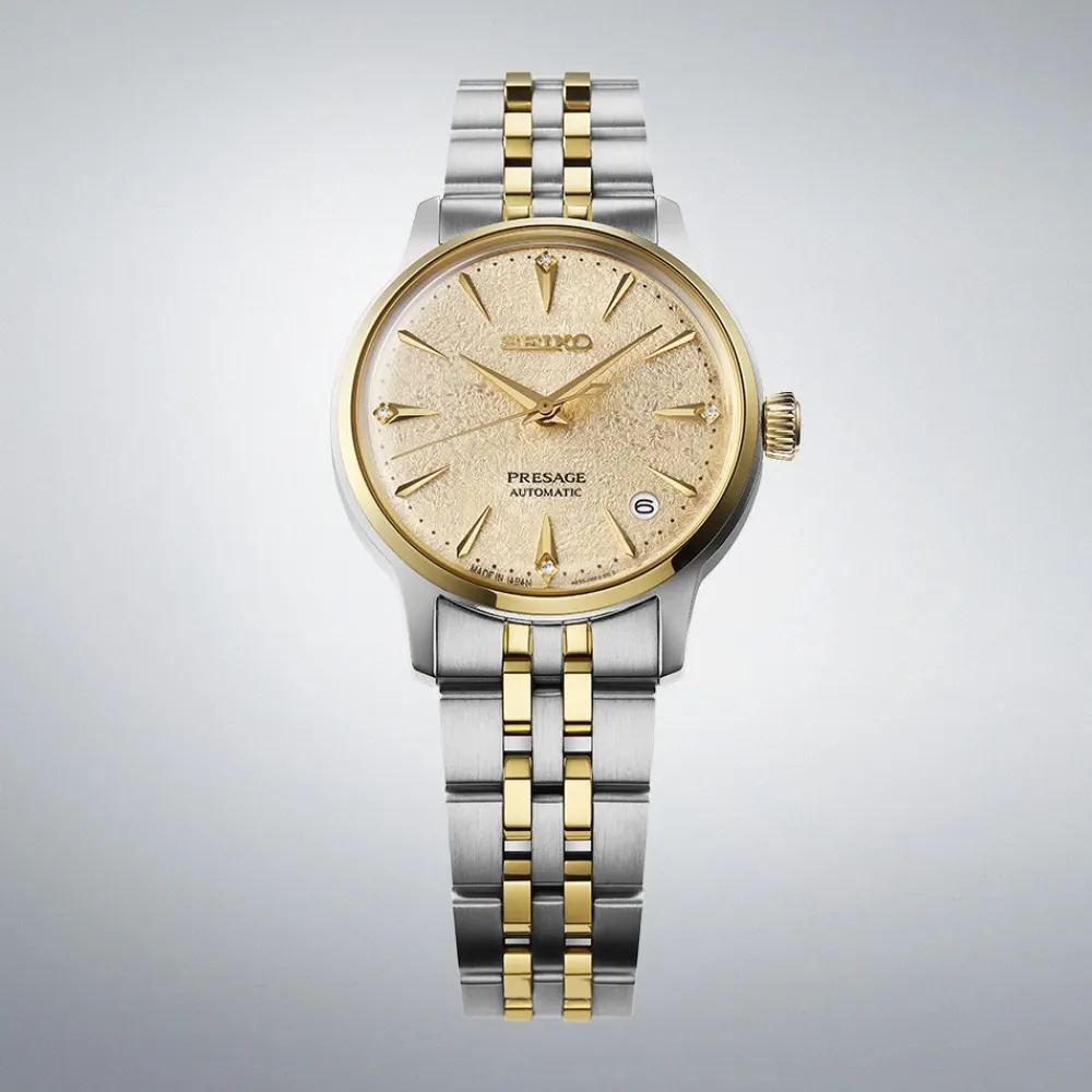 Forkæl dig selv med dette Seiko ur til kvinder. Med automatisk bevægelse, rustfrit stålkasse, 34,00 mm diameter, 5 bar vandtæthed, hardlex krystal og rustfrit stålrem.