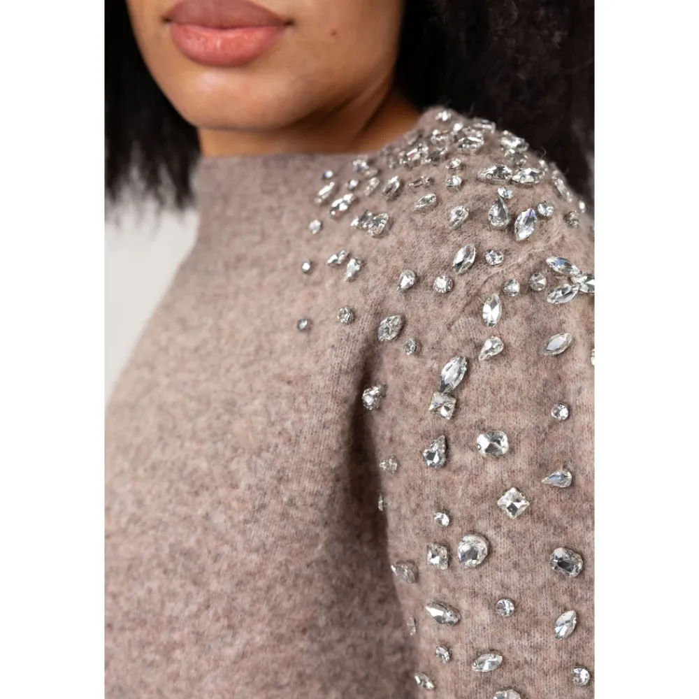 Seventy Barchetta Sweater kombinerer blød uld og babyalpaka-stretch med håndapplikeret rhinestone-smykkebroderi for et raffineret og anvendeligt statement. Velegnet til både et elegant afslappet look og aftenlook. Vigtige egenskaber: Grå | Fango | Uld og babyalpaka | Stretch | Bådeudskæring | Smykkebroderi i rhinestones påsat i hånden | Stretchstrik | Mål og pasform: Modellen er iført IT 42; højde 180 cm. | Sammensætning og pleje: 35% uld | 35% alpaka | 26% polyamid | 4% elastan
