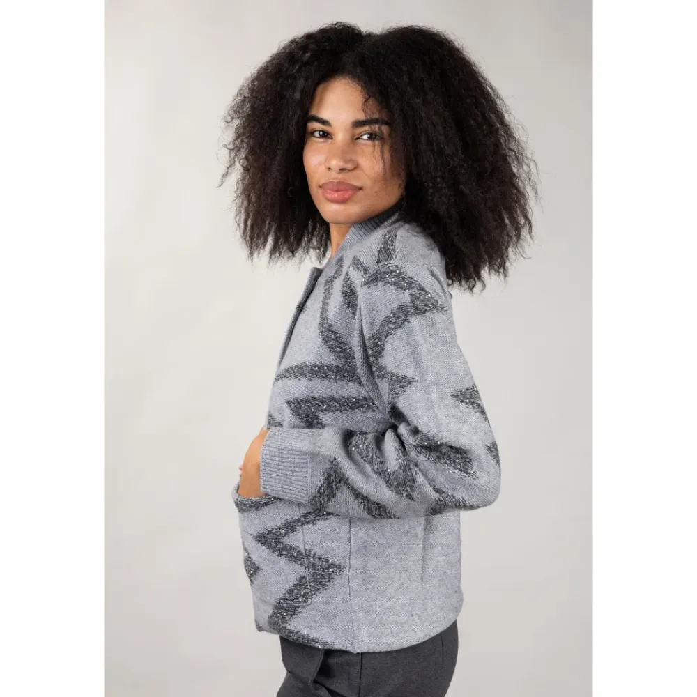Seventy cardigan i lysegrå, en alsidig strikket lagdelingsdel, der er velegnet til hverdagsbrug og overgangssæsoner. Nøgleattributter: Grå | Grigio chiaro