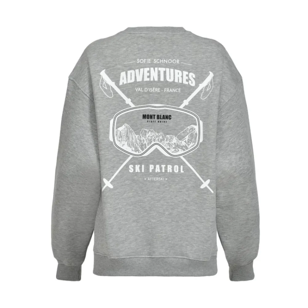 Hold dig varm og stilfuld med denne Sofie Schnoor Sweatshirt. Den er lavet i en flot lys grå meleret farve og har et `Ski Patrol`-print på venstre bryst og ryggen. Sweatshirten har en løs pasform og ribkant detaljer ved halsudskæringen, taljen og ærmegabene. Den er lavet af 80% bomuld og 20% polyester og kan nemt vaskes ved 30 grader. Husk at følge vaske- og brugsanvisningen. Style no.: S234180.