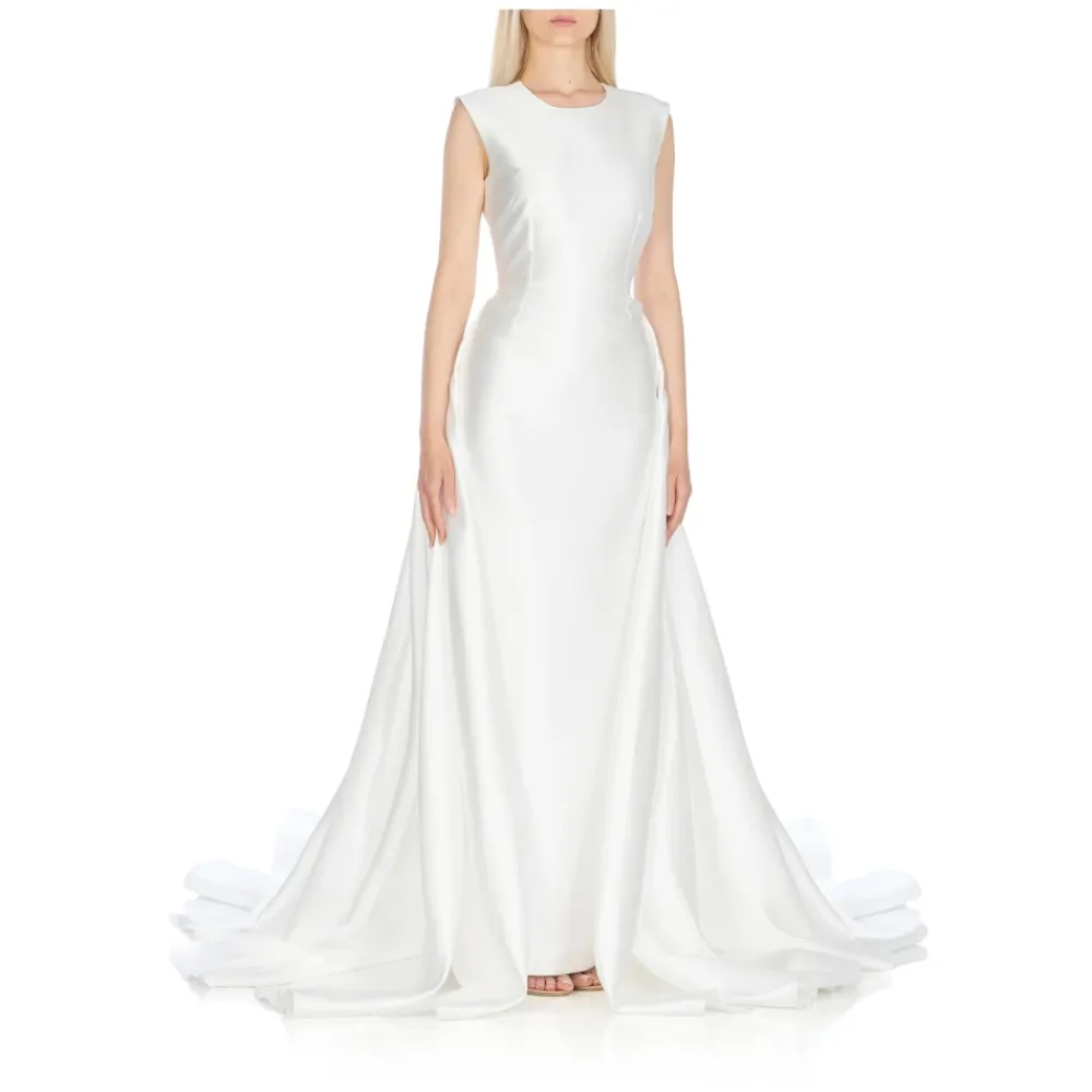 Forkæl dig selv med denne smukke hvide Solace London kjole. Med en klassisk rund halsudskæring, ærmeløs design, lynlås bagpå og en elegant slæb bagpå med en slids i kanten. Modellen er 179 cm høj og bruger størrelse 8.