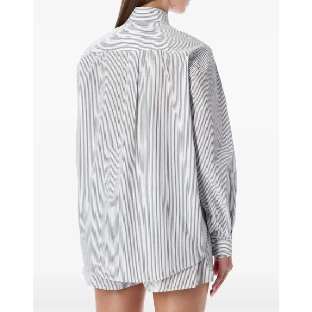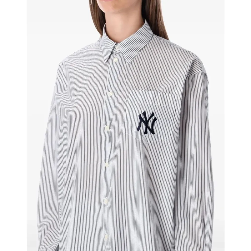 Sporty & Rich Yankees Serif Oversized Shirt er en let poplinsskjorte i bomuld, der er designet til et oversized og afslappet look med et broderet Yankees-logo. Designet som en alsidig overskjorte, der fungerer godt lagdelt over t-shirts eller båret alene. Nøgleattributter: Navy stribet | Bomuldspoplin | Letvægtsstof | Knaplukning foran | Påsyet brystlomme | Knapmanchetter | Kraveudskæring | Broderet ‘Yankees’ logo | Dropped shoulders | Lige kant forneden med lette sideslidser | Stribet mønster | Perlemorsknapper | Mål & pasform: Ærmelængde: 57 cm (størrelse S) | Længde: 71 cm (størrelse S) | Bredde under armene: 61 cm (størrelse S) | Oversized pasform | Lagdelingsstyling | Sammensætning & pleje: 100% Bomuld | Maskinvask kold
