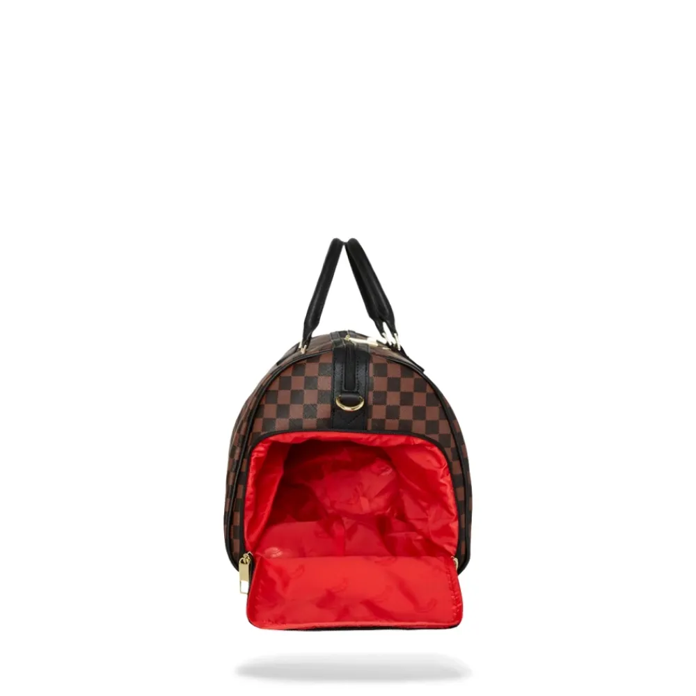 DLXV = 100% ECOPELLE BORSONE DUFFLE HOVEDRUM MED LYNLÅS YDRE LOMMER MED LYNLÅS JUSTERBAR POLSTRET SKULDERREM MED HAJTANDDETALJER DOBBELTE HÅNDTAG SPRAYGROUND LOGO MÅL 50 X 25 X 25 cm