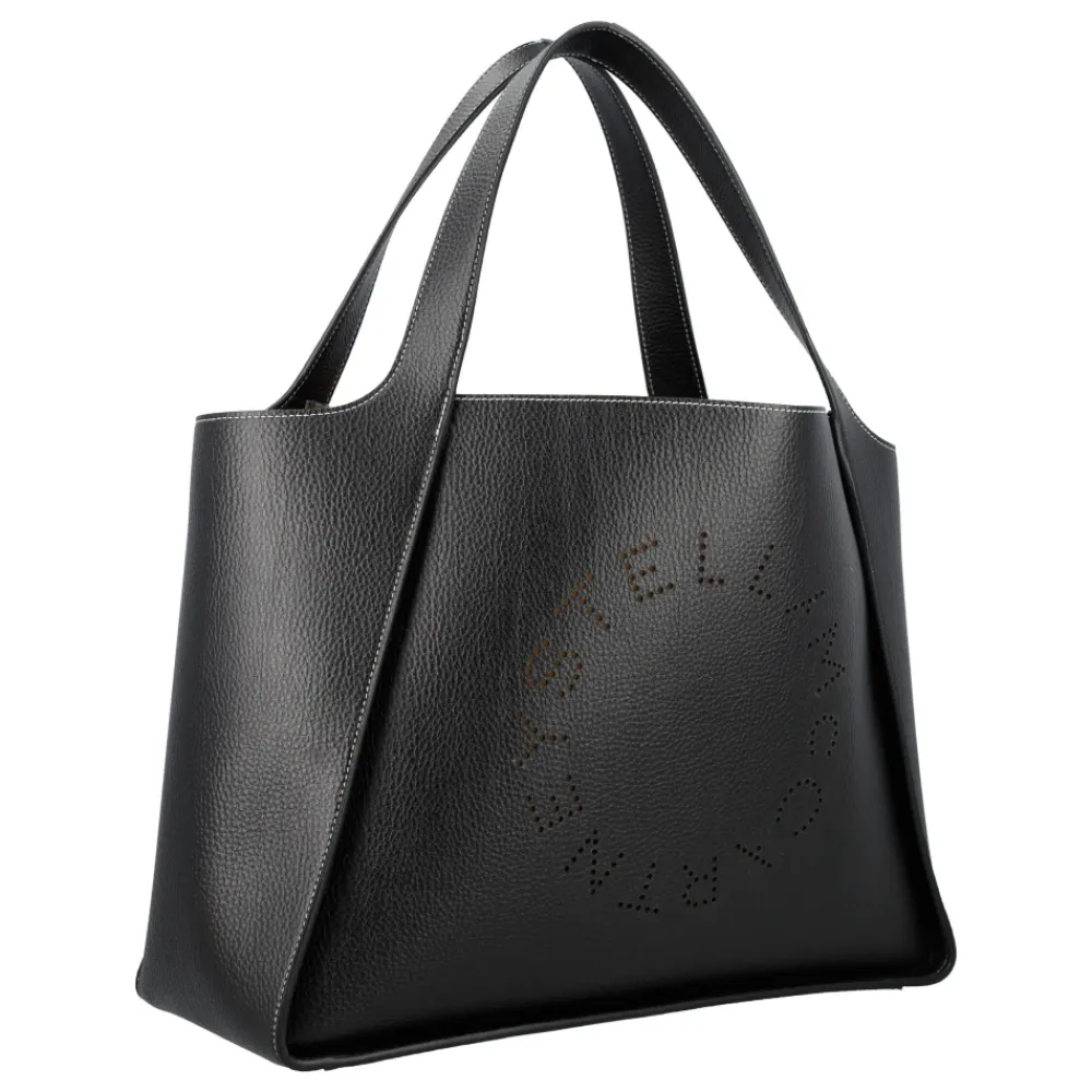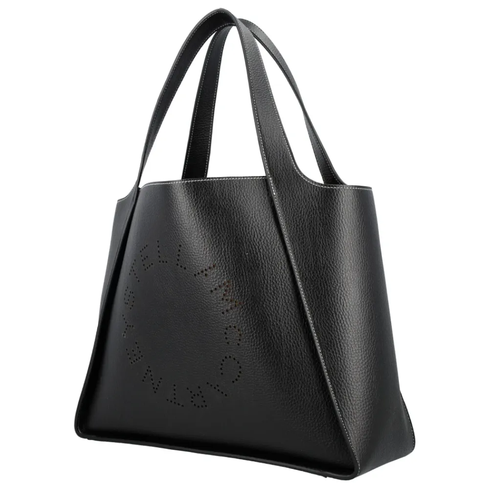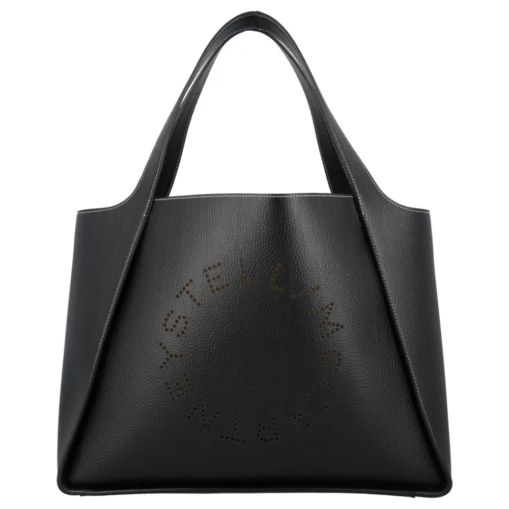 Stella McCartney Logo Large Tote Bag kombinerer en præget overflade med et perforeret cirkelformet logo, der giver en elegant hverdags-tote. Det åbne design og den aftagelige pung gør den praktisk til arbejde og daglig brug. Vigtige egenskaber: Sort | Alter Mat | Dobbelte hanke foroven | Aftagelig pung | Et hovedrum | Fuldt foret indvendigt | Perforeret cirkelformet logo | Præget, kornet tekstur | Kontrasterende enkelt topstikning | Åben konstruktion | Mål og pasform: Højde: 31,5 cm | Bredde: 40 cm | Dybde: 15 cm | Hankefald: 26 cm | Kan komfortabelt rumme tablets og 15″ laptops. | Sammensætning og pleje: Hovedstof: 47% polyurethan, 20% biobaseret polyurethan, 20% præ-consumer polyamid, 13% polyamid | Hanke: 47% polyurethan, 20% biobaseret polyurethan, 20% præ-consumer polyamid, 13% polyamid | Foring: 50% polyamid, 50% polyurethan | Aftørres med en blød, fugtig klud med demineraliseret vand; undgå at skrubbe. Lad den tørre og opbevar den i den medfølgende beskyttelsespose. Undgå kontakt med skarpe genstande og smykker.
