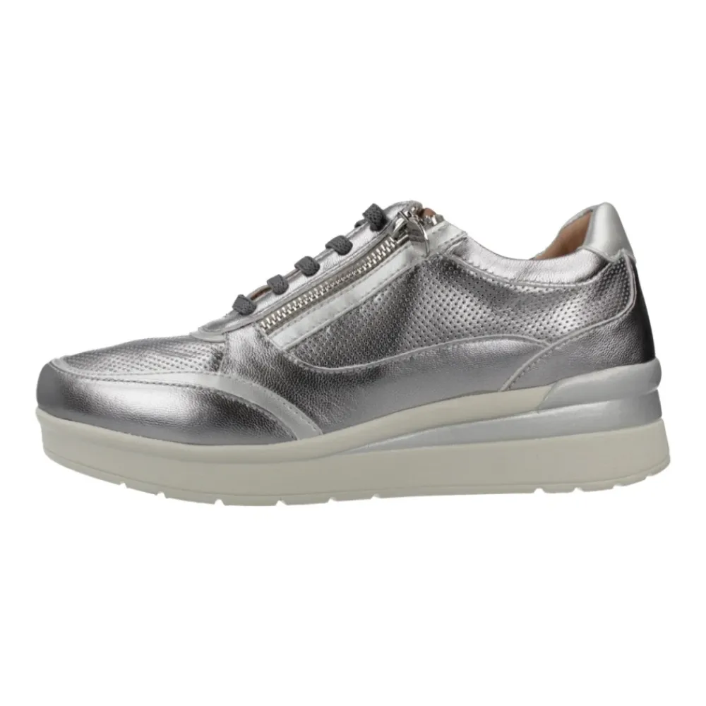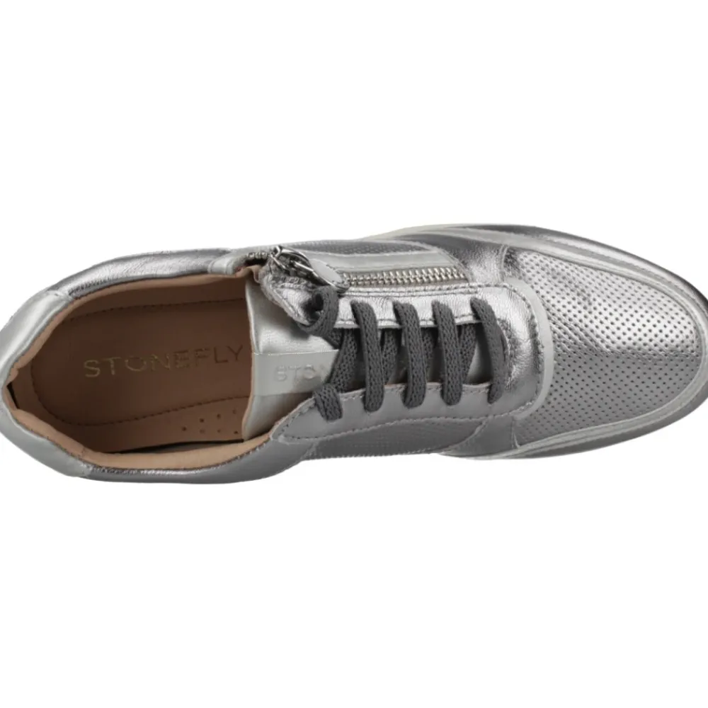 Stonefly Cream 52 Zip Sko er en let sneaker i lamineret læder, designet til nem på- og aftagning med en lynlås i siden og polstret Blusoft-teknologi for komfort hele dagen. Nøgleattributter: Grå | Sølv | Lamineret læder | Blusoft-stødabsorbering | Letvægts EVA-sål | Lynlås i siden for nem på- og aftagning | Snørelukning | Udtagelig indersål | Lamineret finish | Overdel med blandet tekstur | Lav kilehæl | Mål og pasform: Hælhøjde: 5 cm | Almindelig pasform | Sammensætning og pleje: Lamineret læder (overdel) | Læder (foring, indersål) | Syntetiske komponenter | EVA-sål
