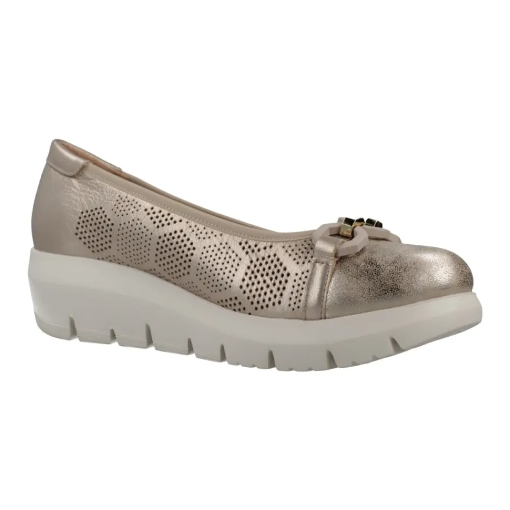 STONEFLY Plume 27 Balletsko kombinerer guldlamineret nappalæder med Blusoft-stødabsorbering for komfortabel brug hele dagen. Den lave hæl og perforerede geometriske overdel gør den velegnet til både afslappede og mere formelle looks. Vigtigste egenskaber: Beige | Guld | Nappalæder | Blusoft-stødabsorbering | EVA-sål for letvægtsstøtte | Komfortstødabsorbering til længerevarende brug | Gummibelagt kædetilbehør | Perforeret overdel for åndbarhed | Perforeret geometrisk overdel | Lamineret metallisk finish | Lav hælprofil | Dimensioner og pasform: Hælhøjde: 4,5 cm | Almindelig pasform | Sammensætning og pleje: Overdel: Nappalæder | Sål: EVA