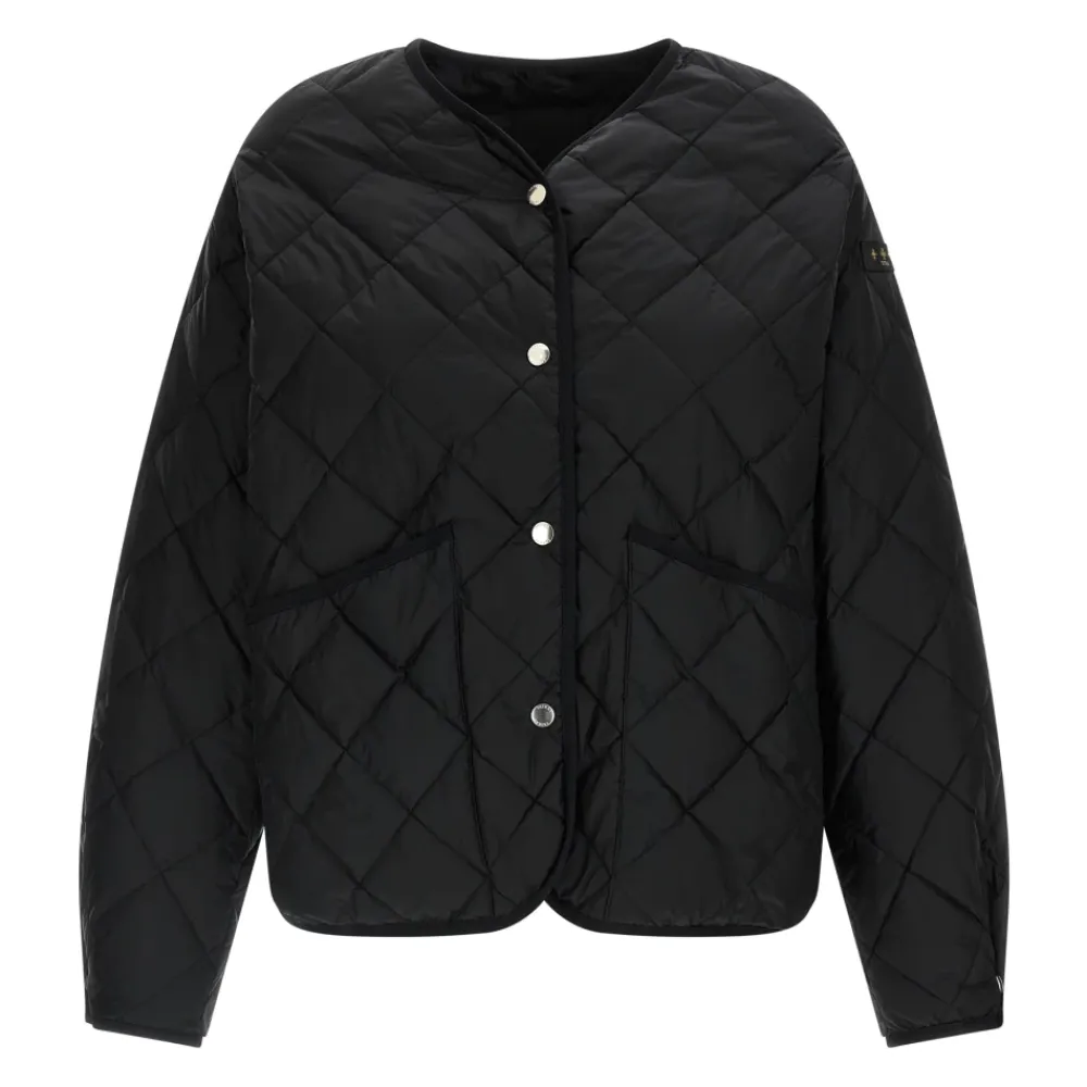 Tatras Larissa Down Jacket kombinerer et let blankt taffeta-ydre med diamantquiltning for isoleret, hverdags vinterbrug. Dens V-hals silhuet og asymmetriske kant gør den til et alsidigt yderlag til både city- og casual outfits. Nøgleegenskaber: Sort | Taffeta | Dunisoleret | Front trykknaplukning | Diamantquiltning | Let V-hals | Lange ærmer med dropped shoulders | Afrundet, asymmetrisk kant | Logo patch applikation | Dimensioner & pasform: Komfortabel pasform