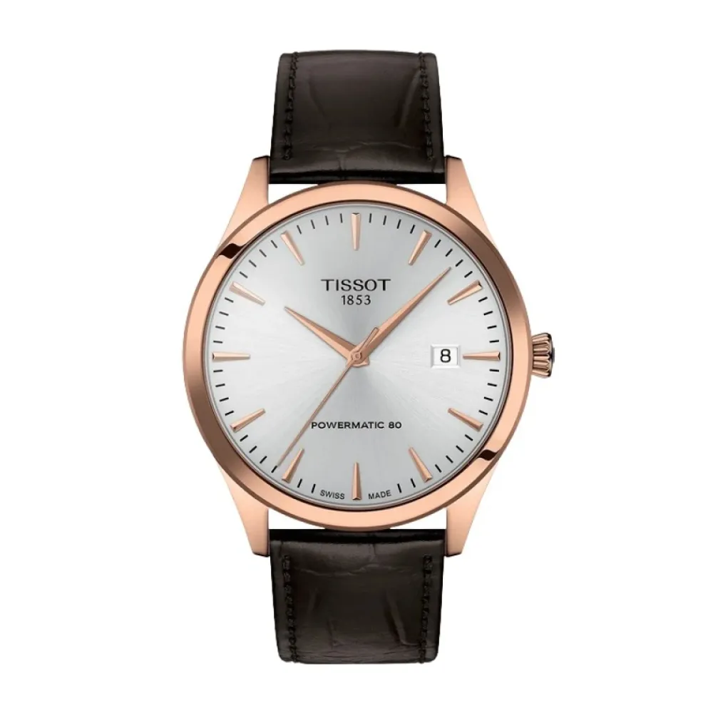 Tissot Classic Dream 40mm kombinerer klassisk stil med et Powermatic 80 Swiss automatisk urværk og en udvidet 80-timers gangreserve. Dens sølvfarvede urskive, safirkrystal og brune læderrem gør den velegnet til både hverdagsbrug og pænere lejligheder. Vigtige egenskaber: Sølvfarvet | Brun | Rustfrit stål | Vandafvisende til 5 bar (50 m / 165 ft) | Ridsefast safirkrystal | Powermatic 80 automatisk urværk med 80-timers gangreserve | Udskiftelig rem med quick-release | Datovisning | Spænde | Sølvfarvet, solbørstet urskive | Rund urkasse | Brun læderrem med alligatormønster | Rosaguld PVD-finish på urkasse i rustfrit stål | Dimensioner og pasform: Urkassediameter: 40,00 mm | Sammensætning og pleje: Rustfrit stål | Læder | Safirkrystal | Tør urkassen og glasset af med en blød klud. Hold læderremmen tør og undgå kontakt med parfume, olier og opløsningsmidler. Få urværket serviceret i henhold til producentens anbefalinger.