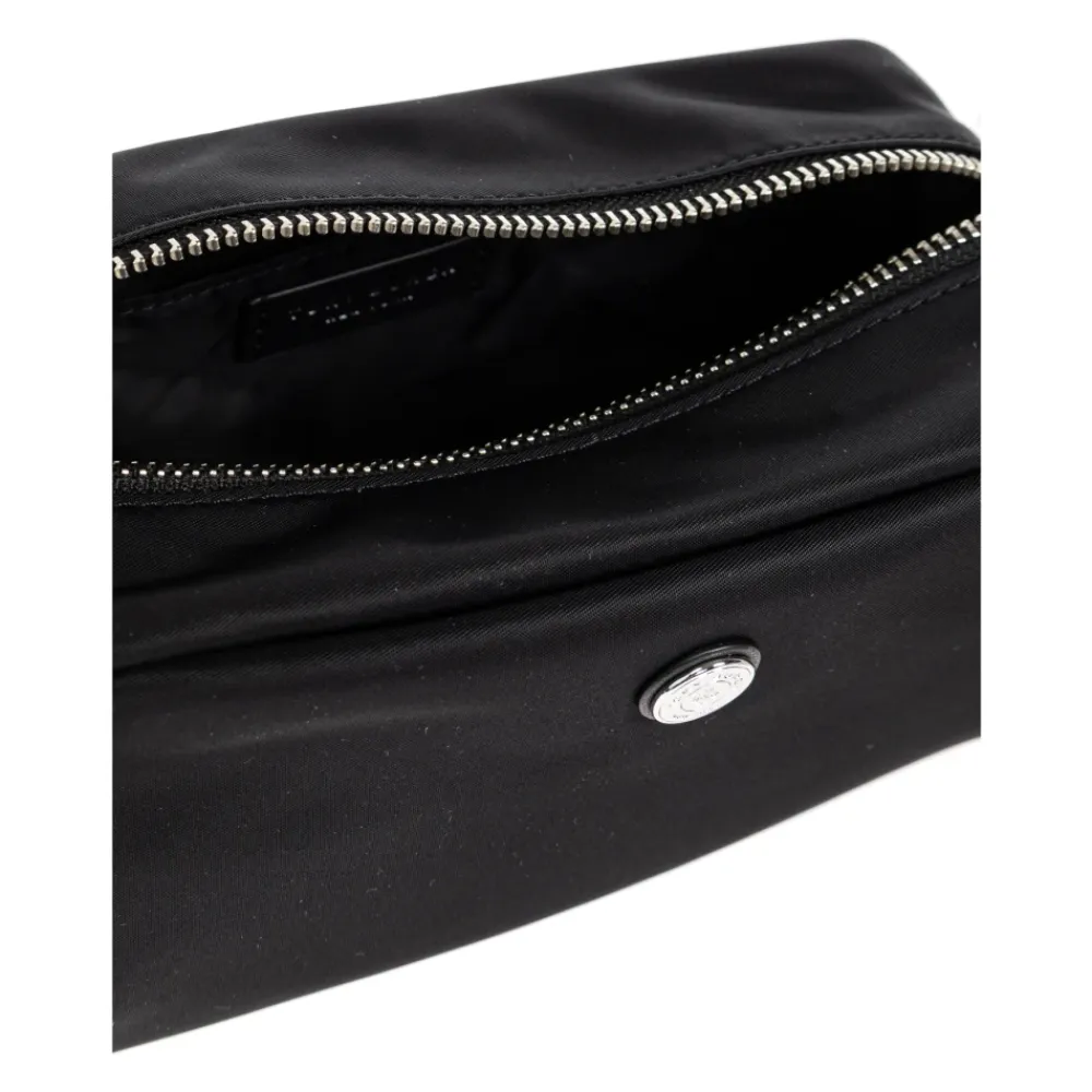 Tory Burch Cosmetic Bag with Logo er en kompakt, minimalistisk taske designet til at organisere dine daglige skønhedsprodukter. Den skiller sig ud med sit runde metallogo og brede lynlåslukning, der giver nem adgang. Vigtige egenskaber: Sort | Tekstil | Holdbar | Let at rengøre | Bred lynlåslukning | Solid bund | Rektangulær minimalistisk form | Blidt afrundede kanter | Rundt designerlogo i metal på fronten | Mål og pasform: Højde: 10 cm | Bredde på bredeste punkt: 19 cm | Bundbredde: 8 cm