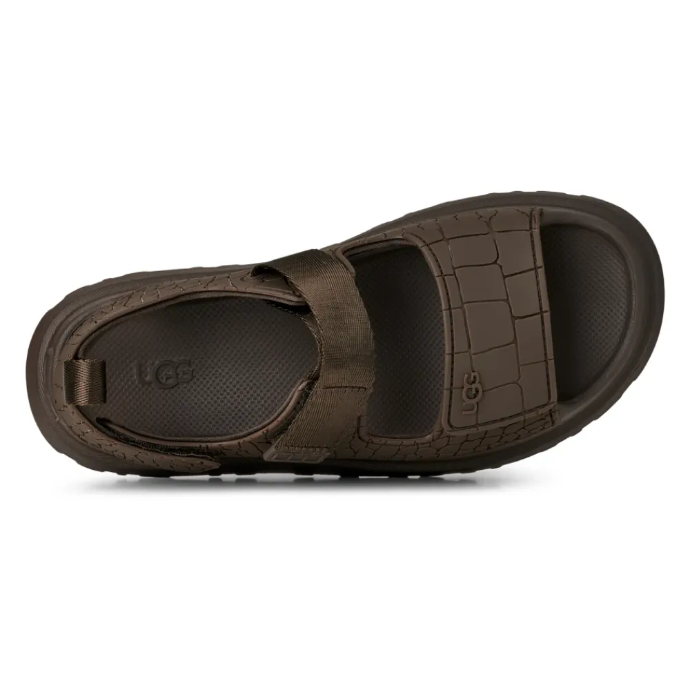 UGG Goldenglow Embossed Slide – en vandvenlig platform-sandal designet til hverdagsbrug. Den prægede overdel og platformsål giver godt greb og gør dem nemme at tage af og på. Vigtige egenskaber: Brun | Tæt røgfarvet | TPU | Vandvenlig | Letvægt | Grippy sål | Lukning med burrebånd (justerbar rem) | Trækflig bagpå | Brandet fodseng for ekstra greb | Præget logo-mønster | Rund, åben tå | Platform flatform-sål | Lug-mønster | Dimensioner & pasform: Justerbar pasform via burrebåndsrem | Sammensætning & pleje: Overdel: TPU | Mellemsål/Ydersål: Sugarcane EVA | Foring: polyester