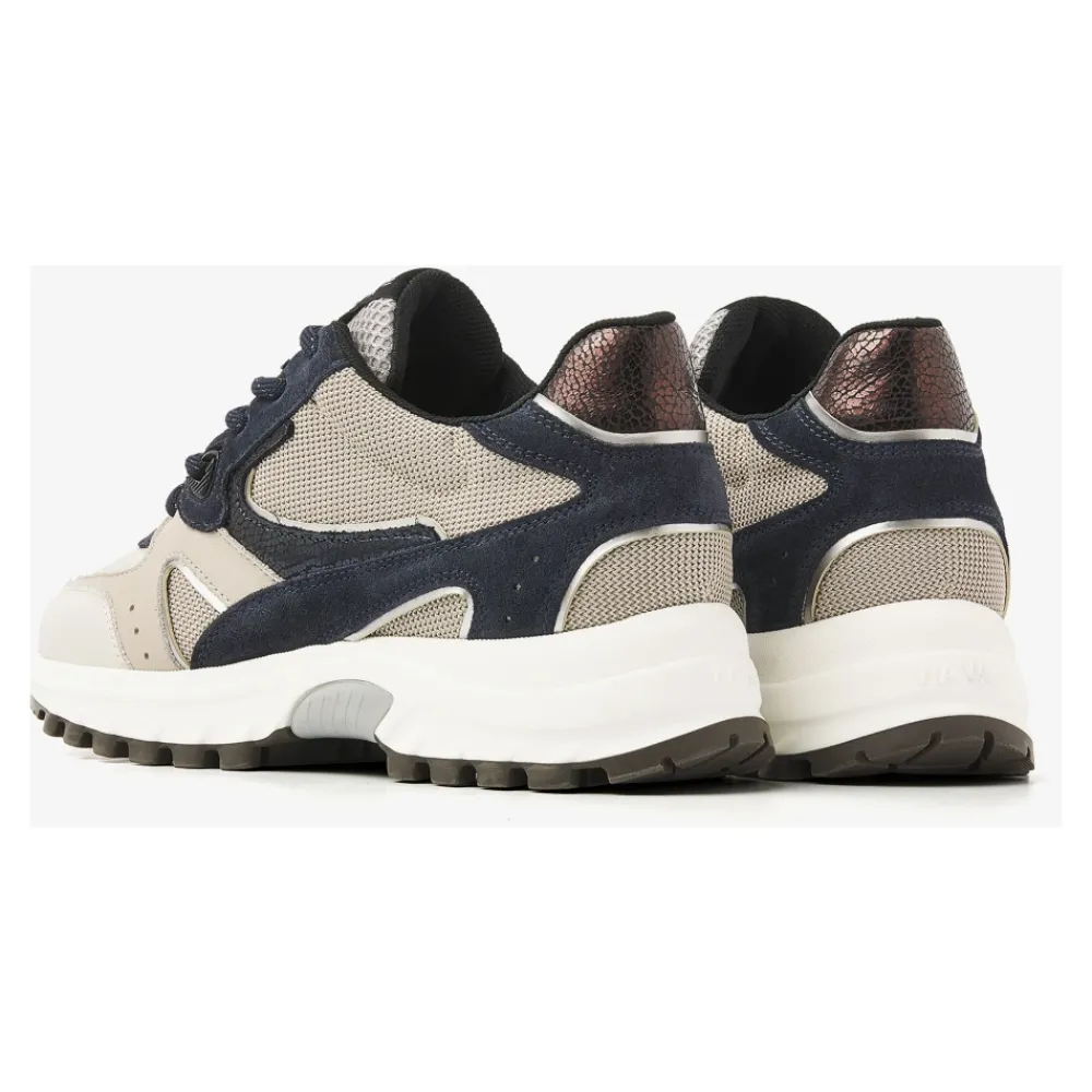 Via Vai Danae Vicky Sneakers kombinerer en overdel i blandede materialer med en chunky, nittet sål for et sporty, edgy look og komfortabel hverdagsbrug. Vigtige egenskaber: Beige | Blå | Læder, Ruskind og Mesh | Åndbart mesh-for | Forbedret greb fra nittet sål | Polstret, udtagelig fodseng for komfort | Udtagelig fodseng | Snørelukning | Mesh-for | Chunky, nittet sål | Metalliske detaljer | Overdel i blandede materialer (læder, ruskind, mesh) | Sporty silhuet | Mål & pasform: Hælhøjde: 4,5 cm | Sålhøjde: 2,5 cm | Almindelig pasform | Sammensætning & pleje: Læder | Ruskind | Mesh | Termoplastisk gummi (sål) | Behandl før første brug med en premium imprægneringsspray, og gentag regelmæssigt for at beskytte mod snavs og pletter.