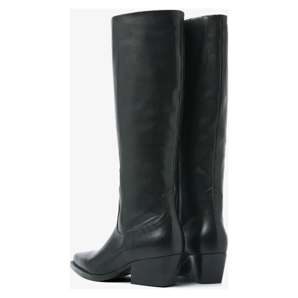 Via Vais Do Ashley High Boots kombinerer elegante, minimalistiske linjer med en skrå blokhæl for et subtilt western-præg, hvilket skaber en alsidig læderstøvle til både hverdags- og finere looks. Vigtige egenskaber: Sort | Zwart | Læder | Funktionel indvendig lynlås | Læderforing | Skrå blokhæl | Lige tå | Håndlavet i Portugal | Dimensioner & pasform: Størrelse 36 — Skaftbredde: 36,2 cm; Skaft højde: 37,2 cm | Størrelse 37 — Skaftbredde: 37,0 cm; Skaft højde: 38,0 cm | Størrelse 38 — Skaftbredde: 37,8 cm; Skaft højde: 38,8 cm | Størrelse 39 — Skaftbredde: 38,6 cm; Skaft højde: 39,6 cm | Størrelse 40 — Skaftbredde: 39,4 cm; Skaft højde: 40,4 cm | Størrelse 41 — Skaftbredde: 40,2 cm; Skaft højde: 41,2 cm | Størrelse 42 — Skaftbredde: 41,0 cm; Skaft højde: 42,0 cm | Sammensætning & pleje: Læder (overdel) | Læderforing | Gummisål