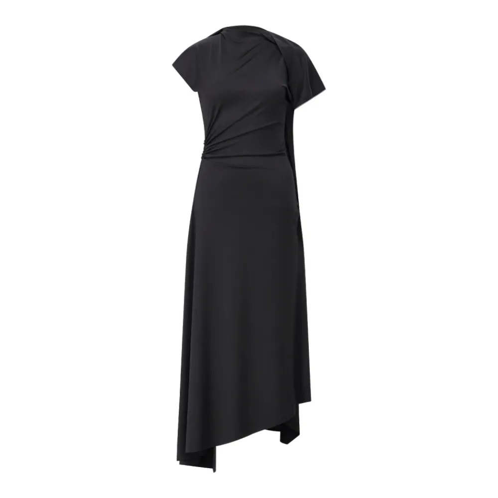 Victoria Beckham Gathered Midi Dress kombinerer en feminin, draperet silhuet med en høj halsudskæring og subtile sideslidser for et ubesværet, elegant hverdagslook. Vigtige egenskaber: Sort | Schwarz | Stretch jersey | Stretch stof | Usynlig lynlåslukning | Draperet sidedetalje | Sideslidser | Høj halsudskæring | T-shirt ærmer med skulderslidser | Dimensioner & pasform: Slim fit med en løs, flydende silhuet | Normal i størrelsen