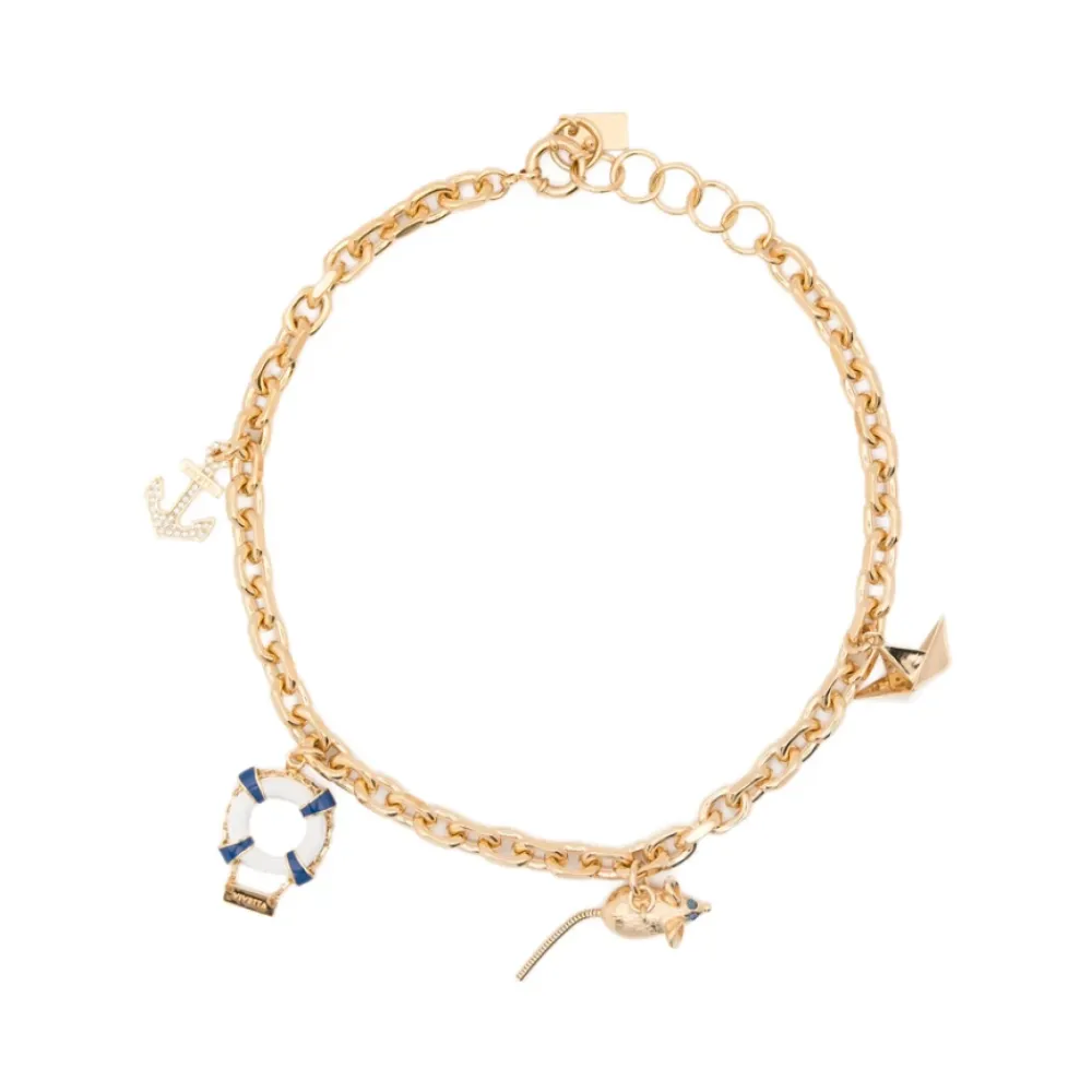 Vivetta Chain Link Charm Bracelet er et guldfarvet armbånd med legende nautiske charms. Det tilføjer et karakteristisk og personligt præg til hverdagslooks. Vigtige egenskaber: Gul | Guld | Hvid | Guldfarvet metal | Beskyttende støvpose inkluderet | Leveres i original emballage | Kædeledsdesign | Anker charm | Livredder charm | Papirbåd charm | Fiske charm | Guldfarvet finish | Sammensætning & pleje: Guldfarvet metal | Ædelstene | Normal hverdagsbrug og eksterne faktorer kan reducere glansen af ædelstene og guldbelagte overflader. Rengør med et ikke-slibende smykkerens og en blød klud. Denne vare leveres med en beskyttende støvpose og leveres i sin originale emballage.