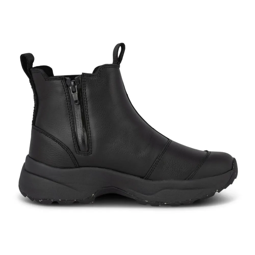 Hold dig stilfuld og praktisk med Silje vandtætte slip-on støvler, der har et elegant sort design og varmt for for ultimativ komfort. Produkt detaljer: Sort | Læder | Vandtæt | Varmt for | Indvendig YKK lynlås | Elastiske sider | Fiske læder hældetalje | Dimensioner og pasform: Lidt smal pasform | Sammensætning og pleje: Tekstil | Kork | Aftørres med en fugtig klud
