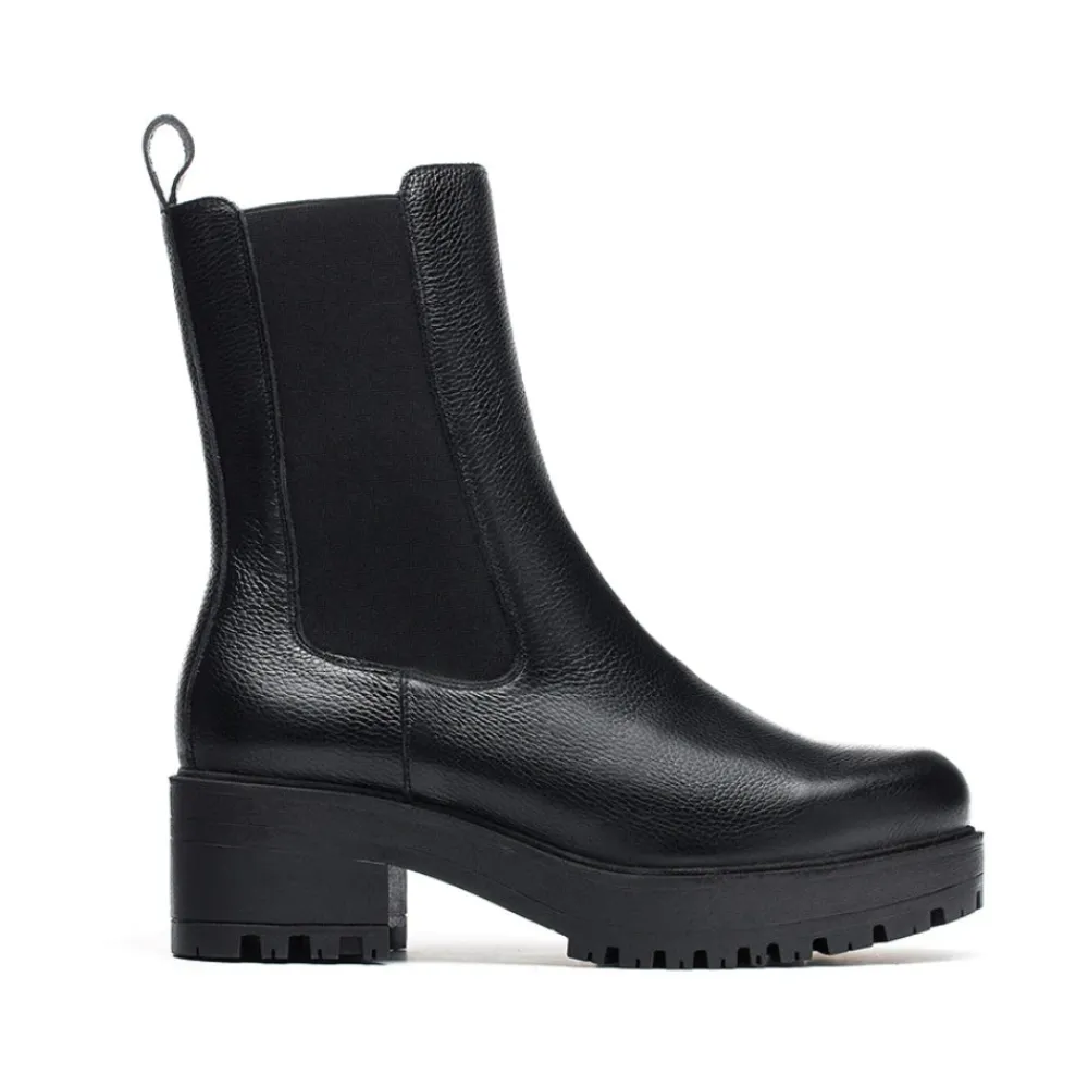 Træd ud i stil med disse Wonders Chelsea-støvler til kvinder. Fremstillet af sort læder med en tekstureret overflade, har disse ankelstøvler brede elastiske sider, en praktisk træklap og lynlåslukning. Den tykke spor sål giver fremragende trækkraft, mens den fleksible sål sikrer maksimal komfort. Oplev Wonders enestående kvalitet med disse bikerstøvler.