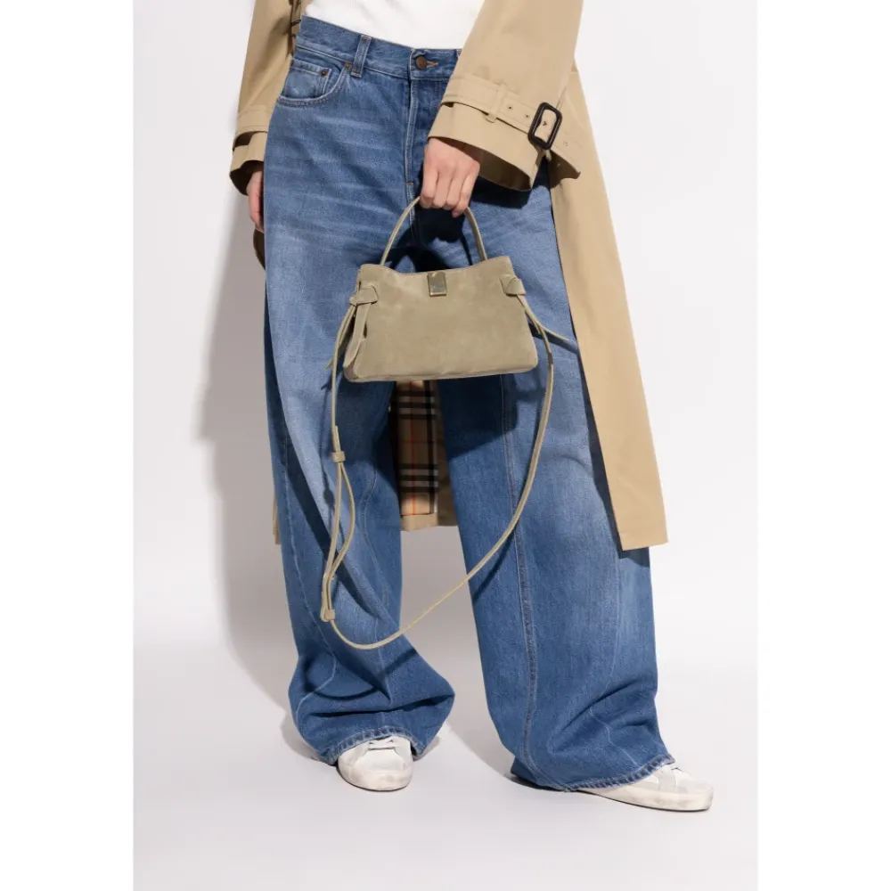 Yuzefi Gyoza Mini Håndtaske kombinerer en kompakt, afrundet silhuet med en markant, guldfarvet firkantlås. Den er fremstillet i blødt ruskind med alsidige bæremuligheder, og den fungerer godt til brug fra dag til aften. Vigtigste egenskaber: Grøn | Ruskindslæder | Slidstærk inderforing | Justerbar skulderrem | Aftagelig skulderrem | Kort tophåndtag | Magnetisk lukning | Afrundet silhuet | Guldfarvet firkantlås i metal | Dekorative syninger og sideknuder | Mål og pasform: Højde: 14,5 cm | Bredde: 23 cm | Sammensætning og pleje: 100% bovint læder | Foring: 50% polyamid, 50% polyuretan | Opbevares på et køligt, tørt sted, væk fra direkte sollys og varmekilder.