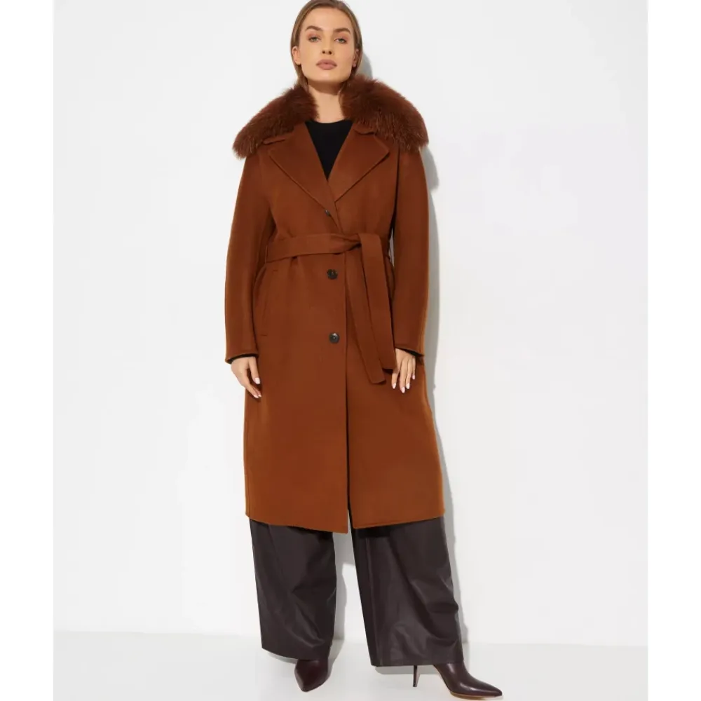 Yves Salomon Frakker*Karamelfarvet frakke med pels krave Brun