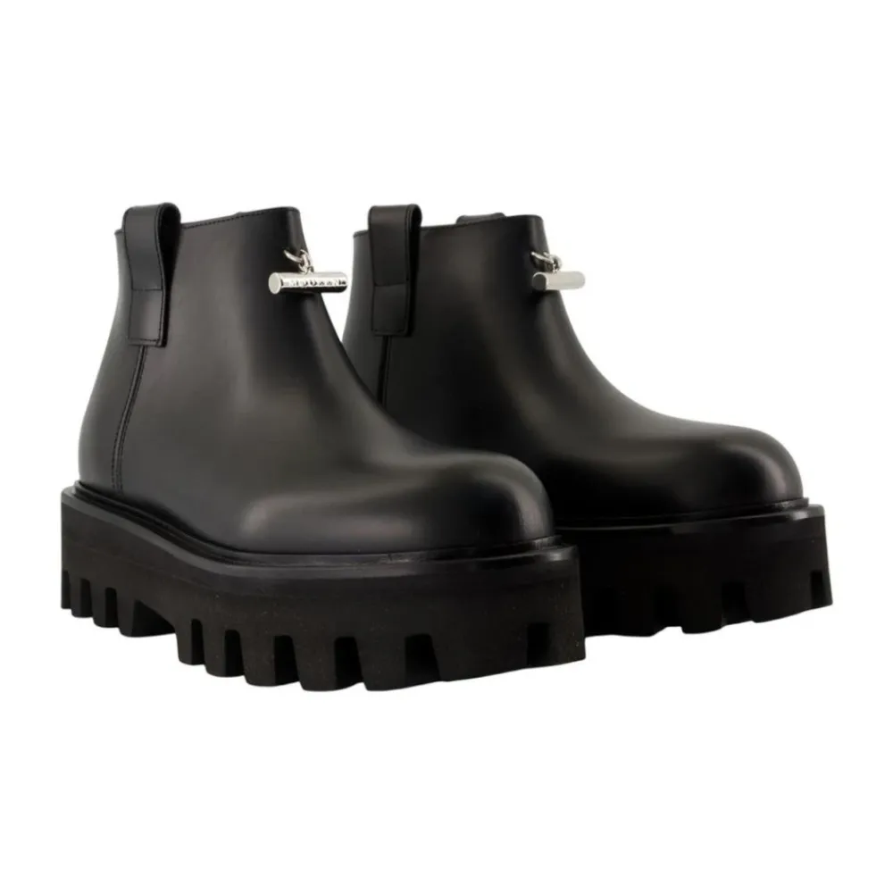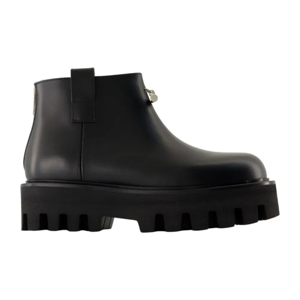 Alexander McQueen Platform Ankelstøvler kombinerer en dristig, chunky platform med en elegant læderoverdel for en markant silhuet. Designet fremhæver højde og trækkraft, samtidig med at de er lette at tage på og have på. Vigtige egenskaber: Sort | Kalvelæder | Gummi ydersål med højt greb | Lynlåslukning bagpå | Trækstropper i siden | Afrundet tå | Chunky platform ydersål med knopper | Sølvfarvet logo hardware | Dimensioner og pasform: Italienske størrelser | Sammensætning og pleje: Overdel: 100% Kalvelæder | Sål: 100% Gummi