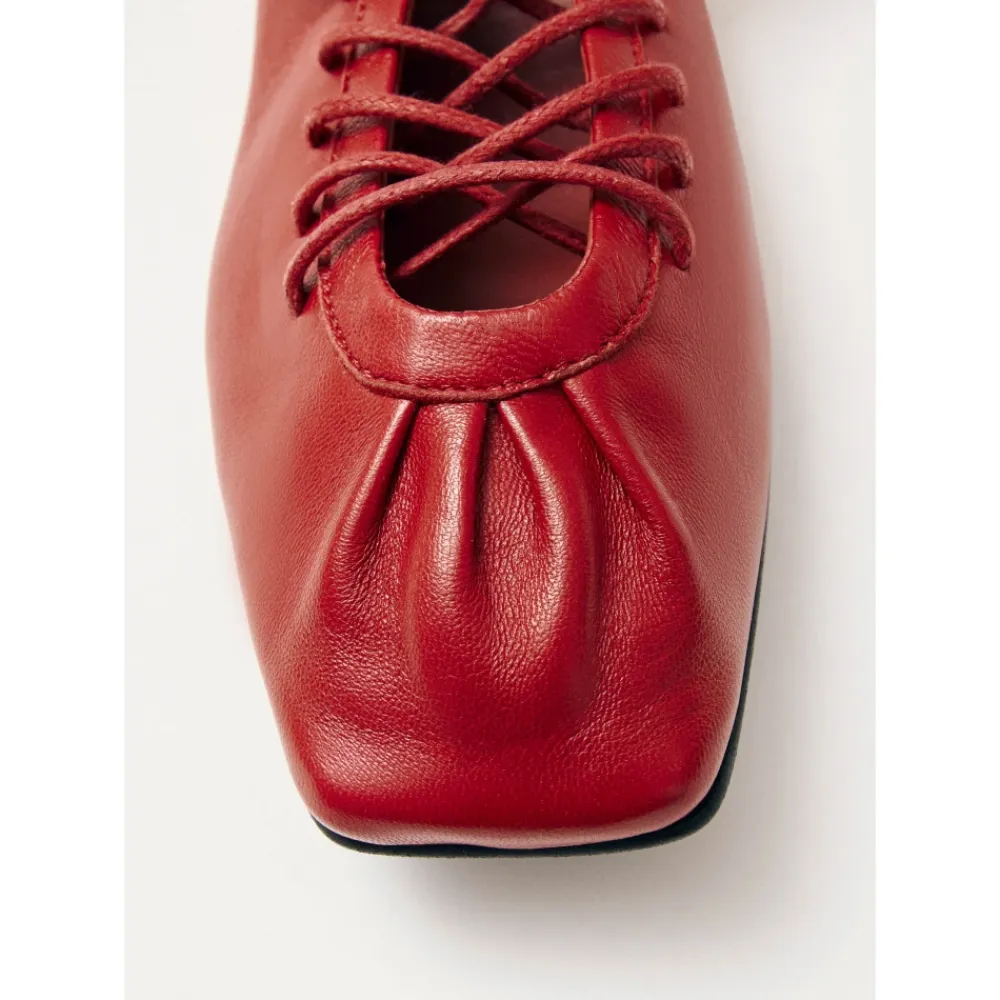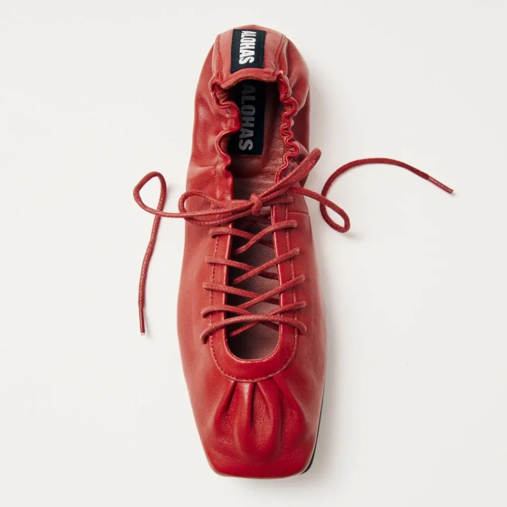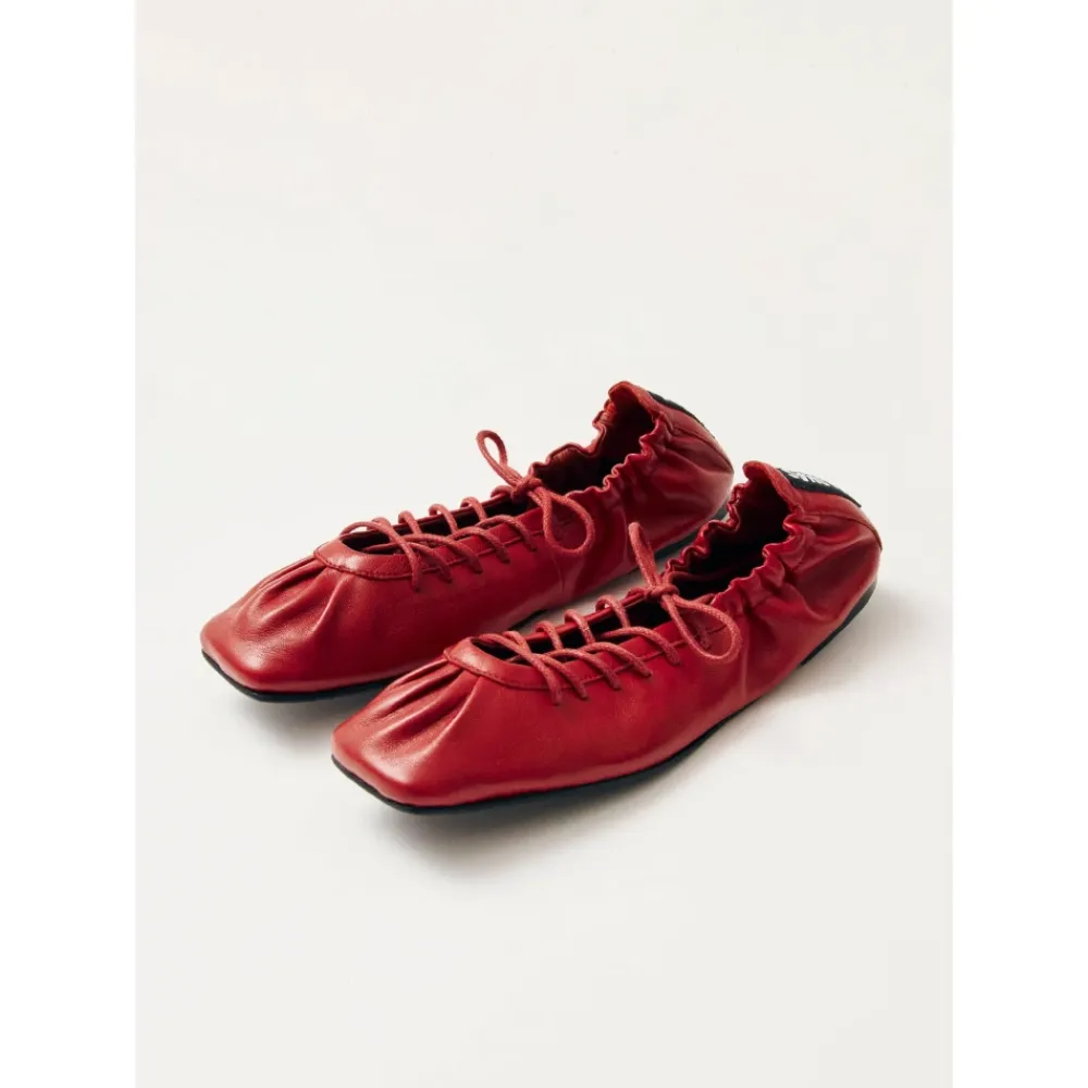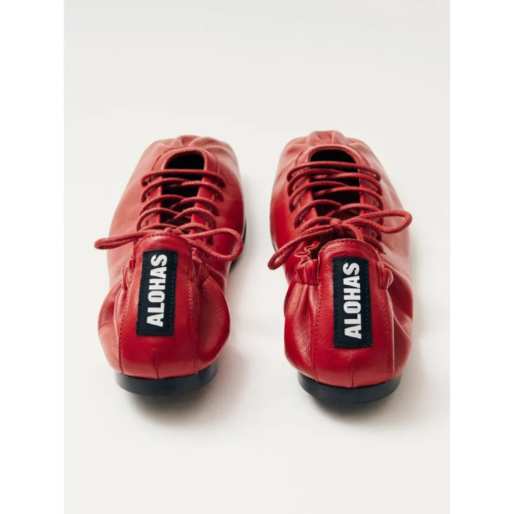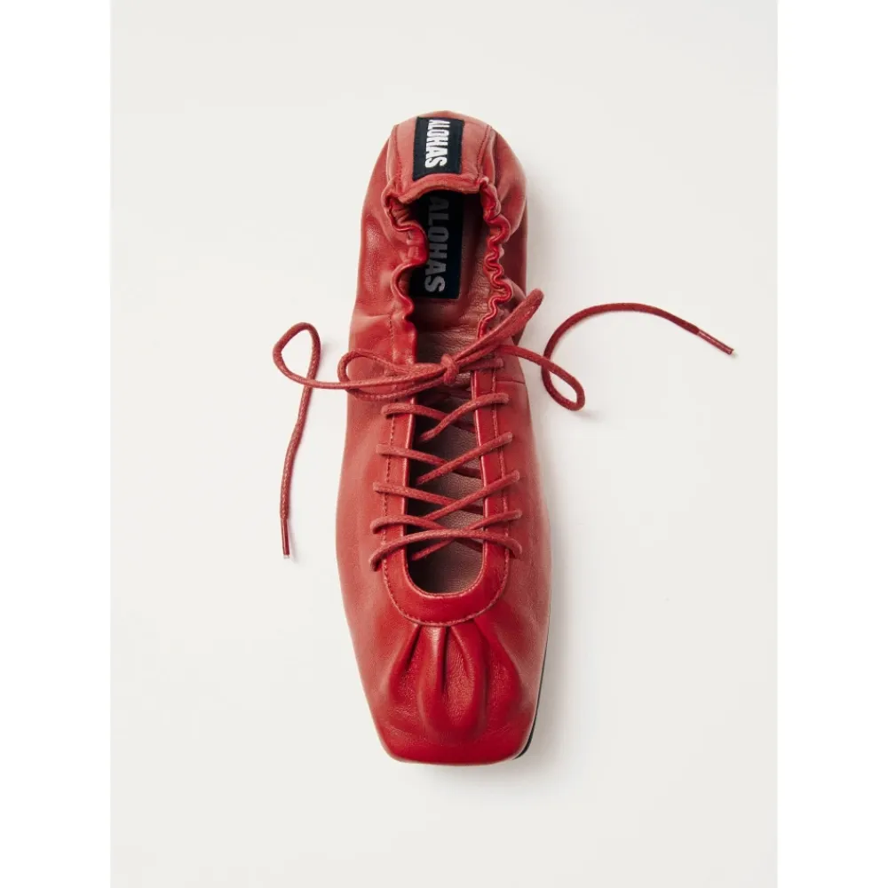 Oplev den perfekte kombination af ballerinaer og sneakers med Aureline Røde Læder Ballerinaer fra ALOHAS. Disse ballerinaer er designet til både stil og komfort, med et unikt firkantet tådesign og støttende elastisk snøre. Produkt detaljer: Rød | Læder | Udsynlig elastisk snøre | Firkantet tå | Tynde afrundede snørebånd | Dimensioner og pasform: Størrelsesrigtig | Hvis du er mellem to størrelser, skal du vælge den mindre størrelse |