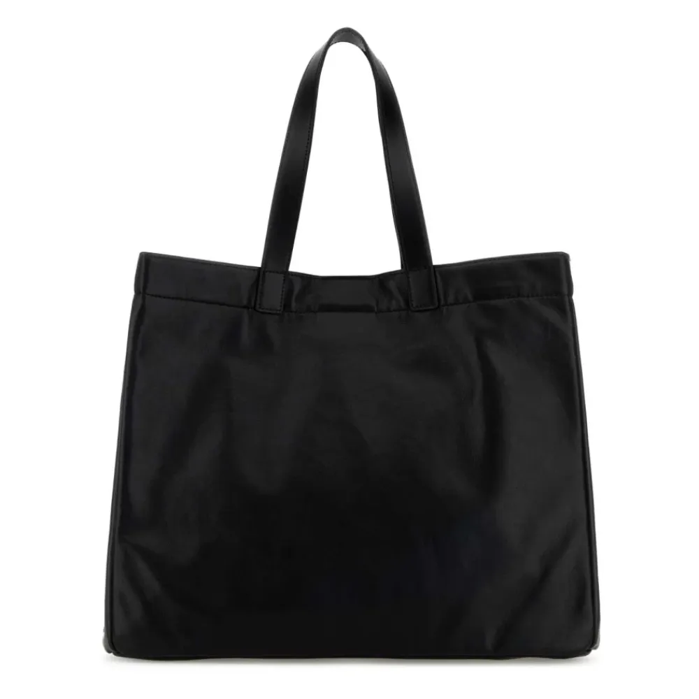 Anine Bing Large Rio Tote i læder – en rummelig, struktureret shopping tote designet til hverdagsbrug og rejser. Den kombinerer en ren, rektangulær silhuet med et tonalt logo for nem og alsidig brug. Nøgleattributter: Sort | Læder | Rummeligt indre | Struktureret silhuet | Holdbar læderkonstruktion | Magnetisk trykknaplukning | To tophanke | Aftagelig indvendig base | Fuldt foret indre | Logo-monogram foran | Rektangulær form | Glat læderfinish | Dimensioner og pasform: Bredde: 42 cm | Højde: 34 cm | Dybde: 22 cm | Hankhøjde: 20 cm | Sammensætning og pleje: 48% læder | 25% polyester | 27% polyurethan | Pletrensning kun.